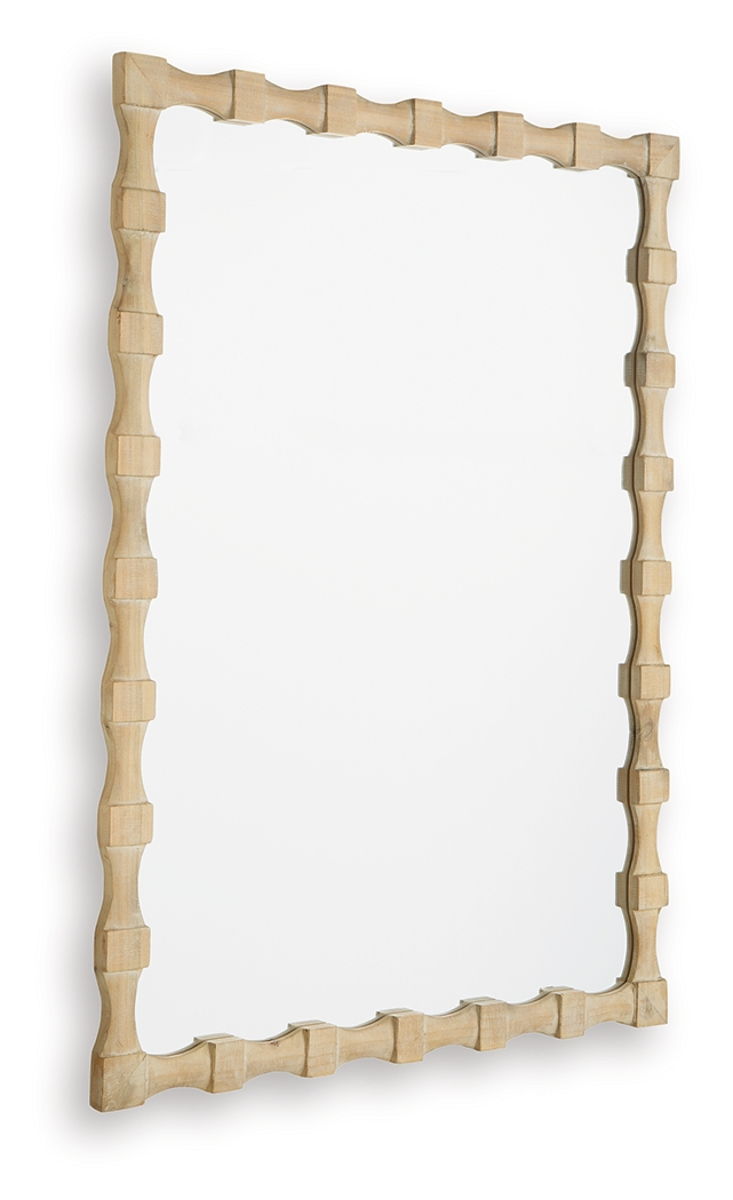 This accent mirror is a must-have thanks to its modern geometric design and inviting light brown finish. Displayed vertically or horizontally, it’s a welcome addition to a living area, entryway or bedroom.