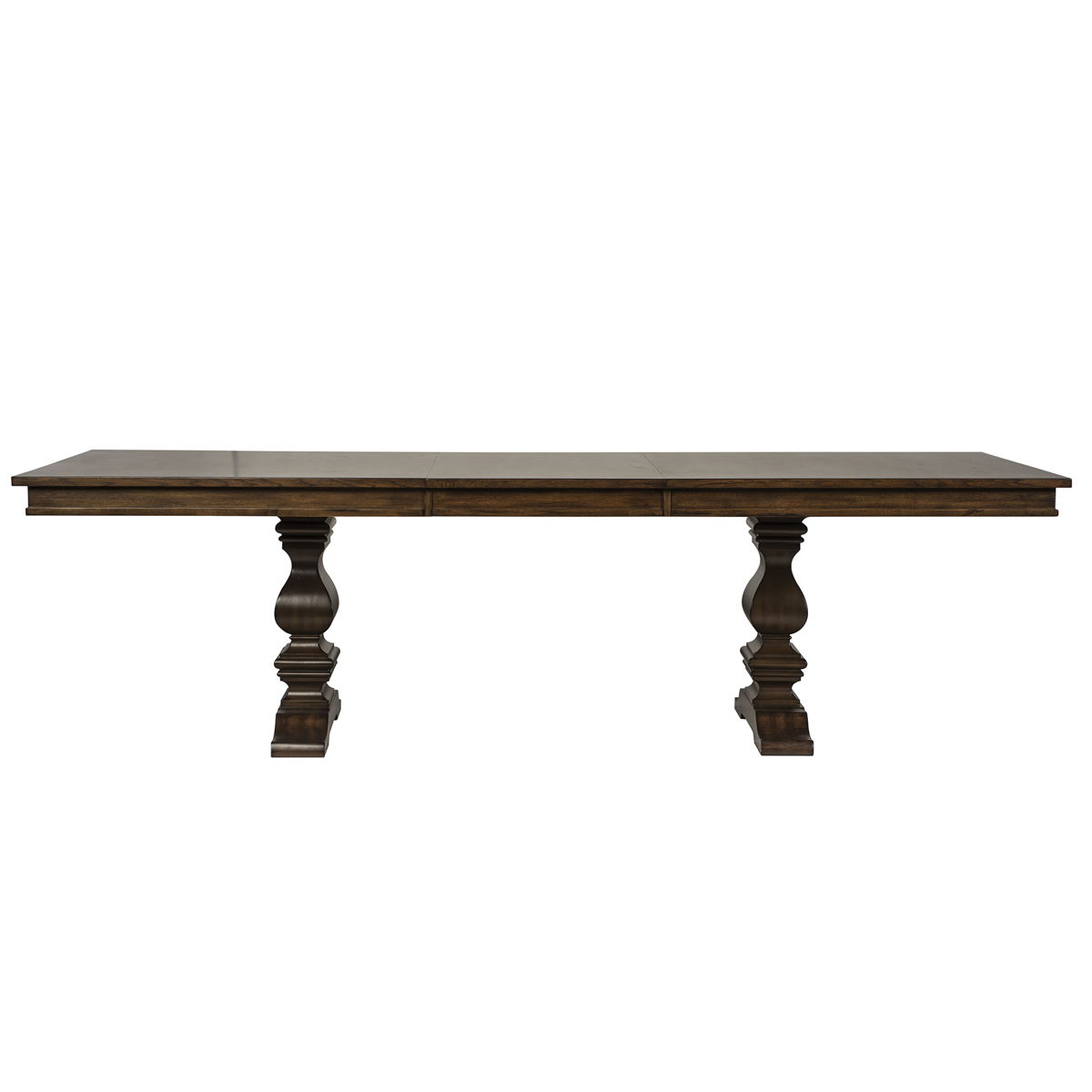 Armand, inspired by a 17 century French antique. Pulling in Tuscan elements for the dining the rectangular trestle table features heavy square turned bases. Square back, armless upholstered chairs feature linen upholstery with a nail head trim on the base of the chair. The buffet features 4 door panels with overlays and pilasters chamfered for a soft appeal. Cases feature overlays on the top drawers, framed drawer panels, block feet and chamfered posts. Media features drop down fronts so it can double as a small dresser with the landscape mirror for smaller spaces.