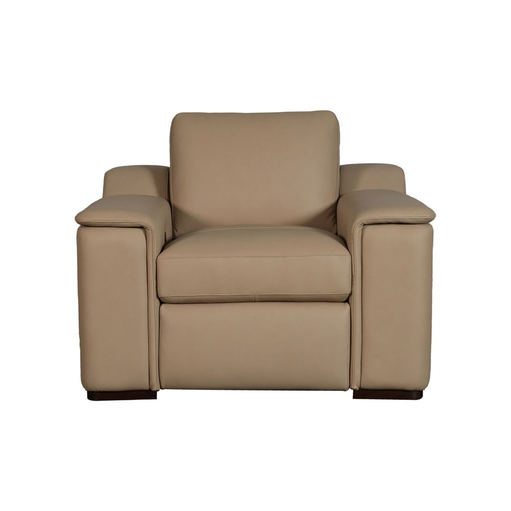 Armon’s low-profile silhouette emulates a stationary aesthetic with its fully finished frame and 360-degree visual appeal, making it suitable to open floor plans. Featuring a moderately scaled track arm with a soft pad-over arm detail, box banded seat and back cushions, and decorative top-stitching detail, Armon radiates comfort and versatility. In the ‘all closed’ position, Armon delivers a quiet luxury aesthetic. When the comfort features and entertainment technology are engaged, Armon transforms into an epicenter of comfort and connection. Incline action with Power Foot function and Zero Gravity leg lift combined with concealed manual headrests stand at the ready to maximize your relaxation and comfort. The pop-out arm-sides include storage, stainless steel cup holder, as well as USB and USB-C charging ports. Further amplifying the experience, each piece includes wireless technology and concealed speakers located on each arm-side for easy connectivity to Smart TVs or personal streaming devices. Armon is dressed in a Top Grain Leather with Match. The Fawn colored leather features a smooth grain, low sheen, and soft talcy finish coat – making Archer perfectly suited for active family environments.