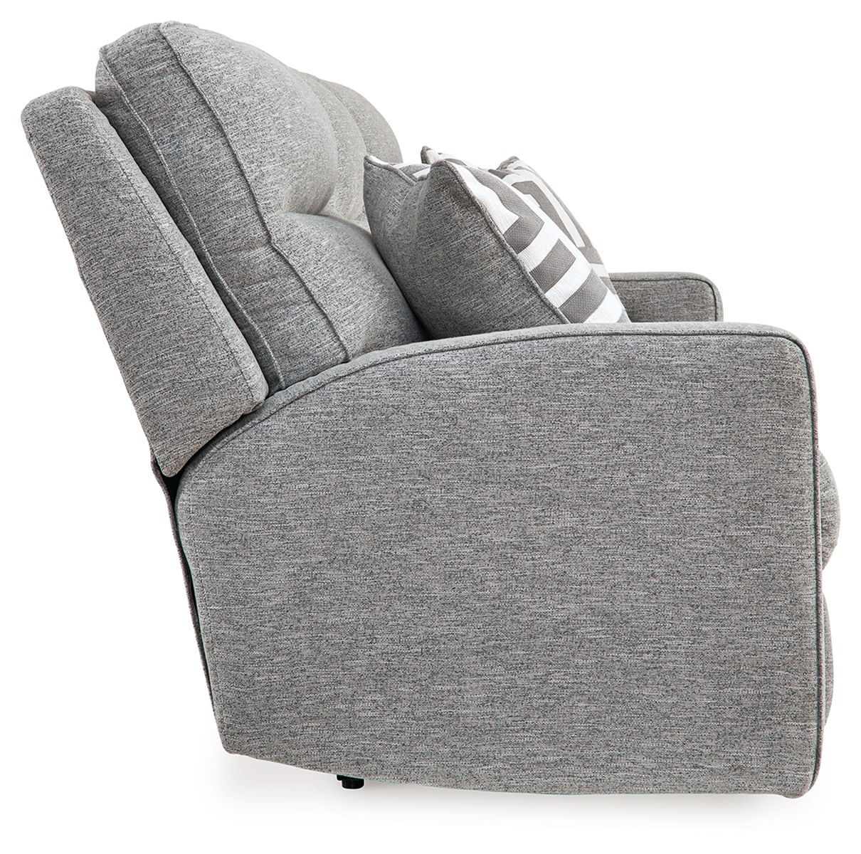 If style is the question, then this power reclining sofa is the answer. Its clean-lined profile is beautifully contemporary. High-performance fabric, machine-washable pillows and plump cushioning make it so easy to comfortably kick up your heels The adjustable Easy View™ headrest allows a primo view of the TV, and the extended ottoman provides extra room to really stretch out. Simply sit back, chill out and recline away—this sofa is designed to be your favorite seat in the house.