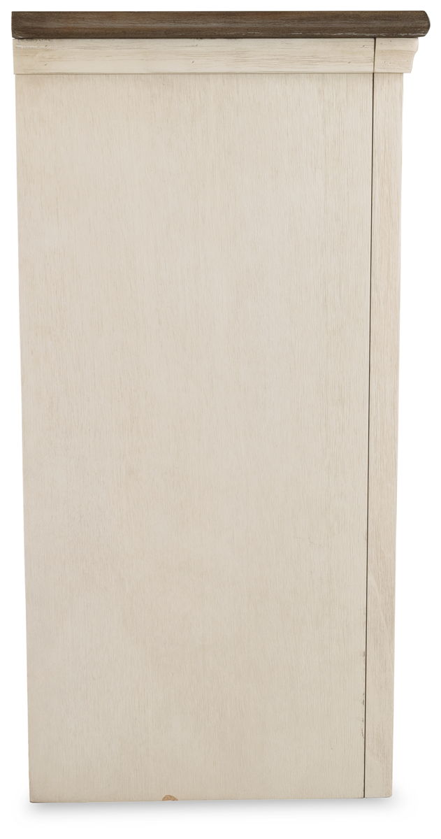 Whether your style is farmhouse fresh, shabby chic or country cottage, you’ll find this medium TV stand perfectly in tune. Its two-tone finish pairs a trendy textured antique white with a weathered gray for that much more quaint character. Charming elements include crossbuck adorned cabinet doors with glass inlays for peek-through flair. Ample adjustable shelving and cutouts for wire management nicely accommodate your media needs.