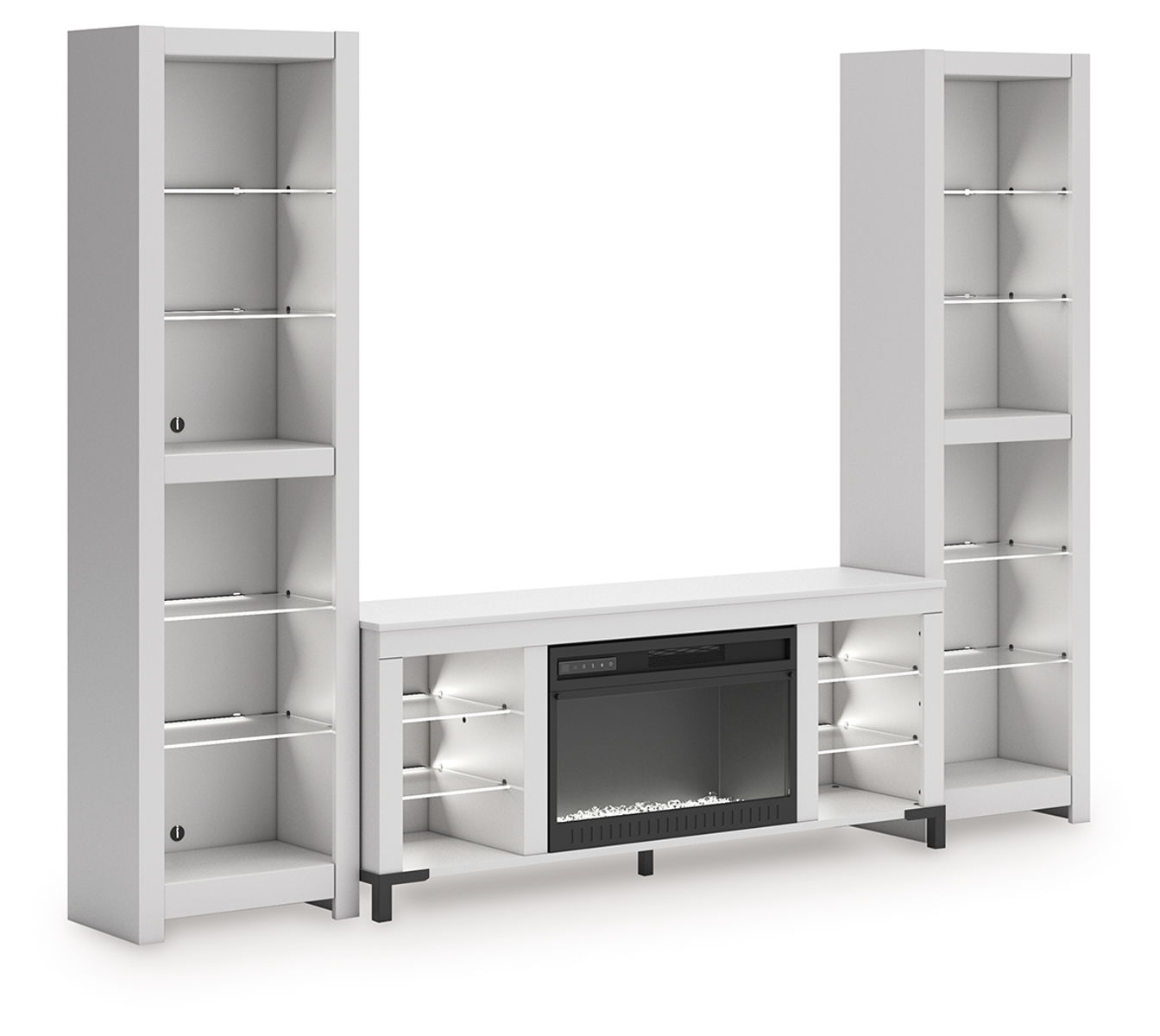 - Includes TV stand with electric fireplace and 2 piers