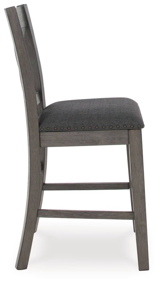 Perfect portion. Striking a simply chic pose, this counter height dining set is crafted with fascinating flair. A subtle gray wash finish gives the clean-lined design a casually cool sensibility. Plushly cushioned seats in a soft, neutral upholstery add to the allure. During casual get-togethers, daily dinners and family game nights alike, this set serves up stylish function.