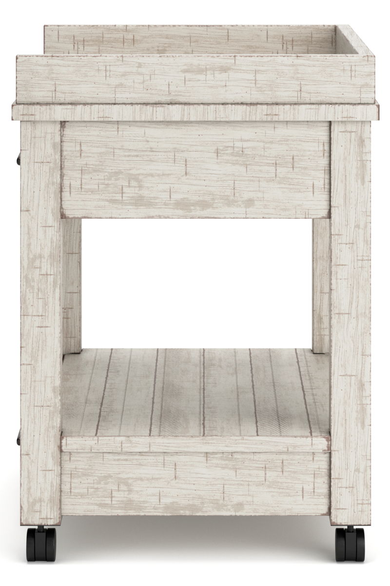 Set on casters for easy mobility, this printer stand rolls out a fresh look in modern farmhouse living. Two smooth-gliding drawers with dovetail construction reflect high quality that never goes out of fashion. Pair of electrical outlets and USB charging ports make it an indispensable home office essential.