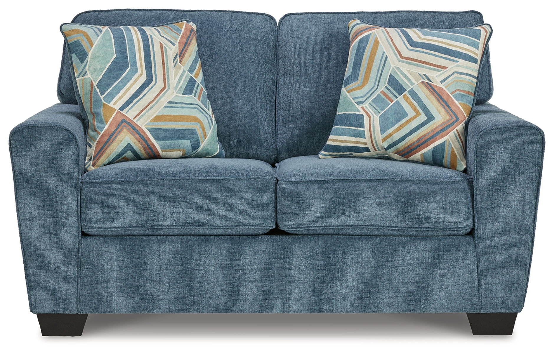 Need a simple style refresh? Liven up your living room essentials with this loveseat. A chunky silhouette holds invitingly ample cushioning you’ll long to lounge in. Crosshatched upholstery and accent pillows give the otherwise casual design a delightful visual texture that’s perfect for settings from classic to contemporary.