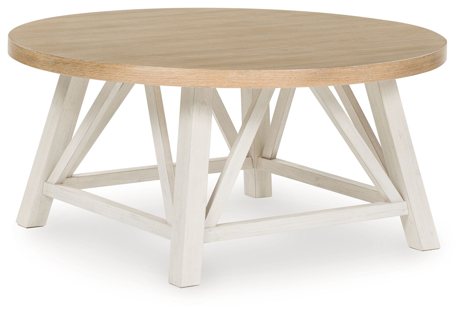 Invite easy-breezy style in with this occasional table set. Complete with a coffee table and matching end tables, the stylish two-tone set fits right into modern farmhouse and coastal settings. Simply stage and arrange around your existing furniture—their rounded design pairs well with smaller sofas and sectionals, so you can make the most of your space.