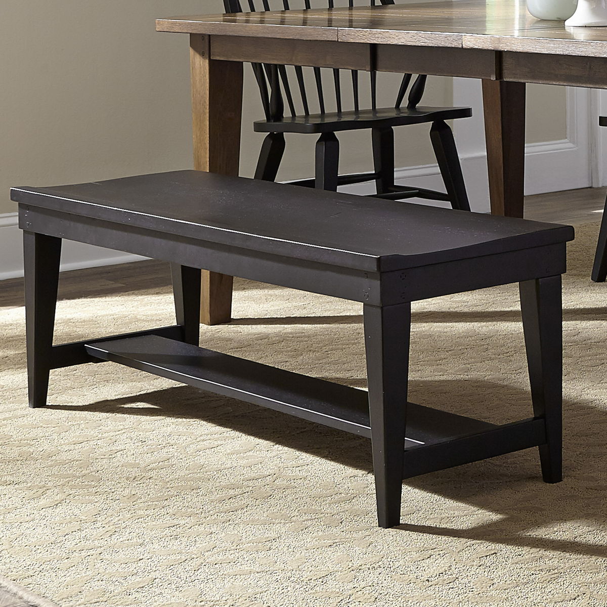 Sit in comfort and style with the Hearthstone Ridge bench. Crafted of rubberwood solids, this piece features a black finish, nylon chair glides to protect your flooring, saddle shaped seat for added comfort, wooden peg accents, a consumer friendly assembly for added convenience, and is available in an alternate finish. With vintage appeal, Hearthstone is a casual, rustic style that never goes out of fashion. Elements of shaker and craftsman designs accent this piece effortlessly.