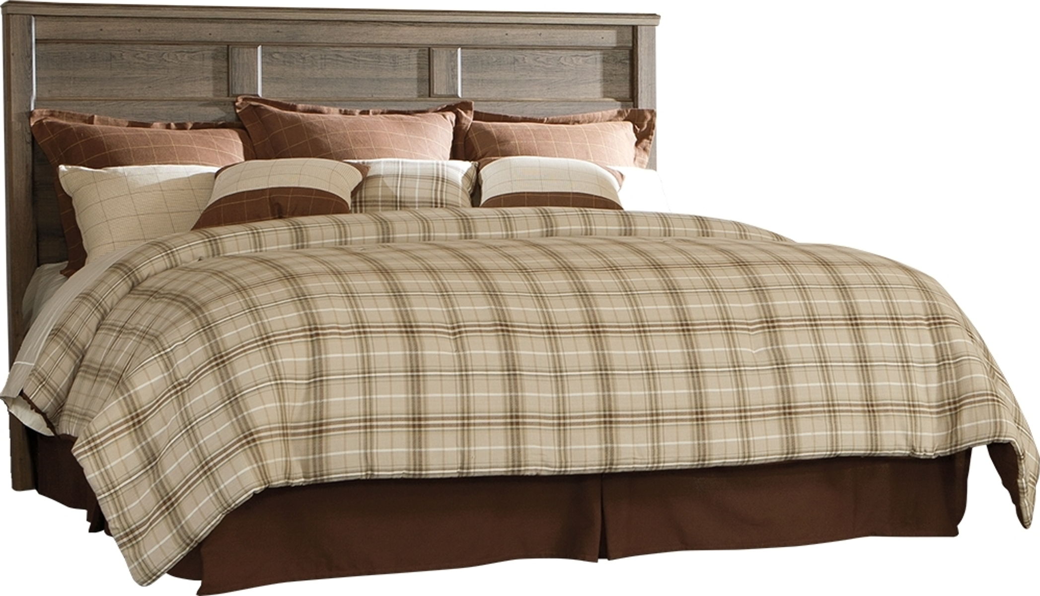 Vintage aged rough sawn finish over replicated oak grain. Large scaled rustic bedroom collection features case pilasters and thick poster bed posts. Substantial warm pewter color drawer handles. Poster bed offers optional footboard storage. Side roller glides for smooth operating drawers.