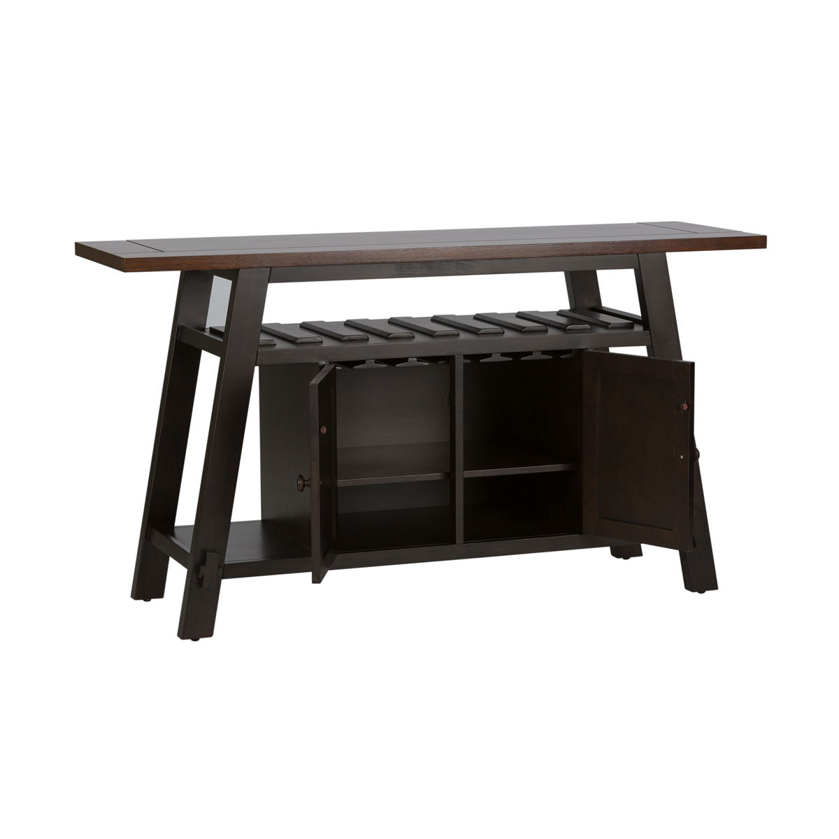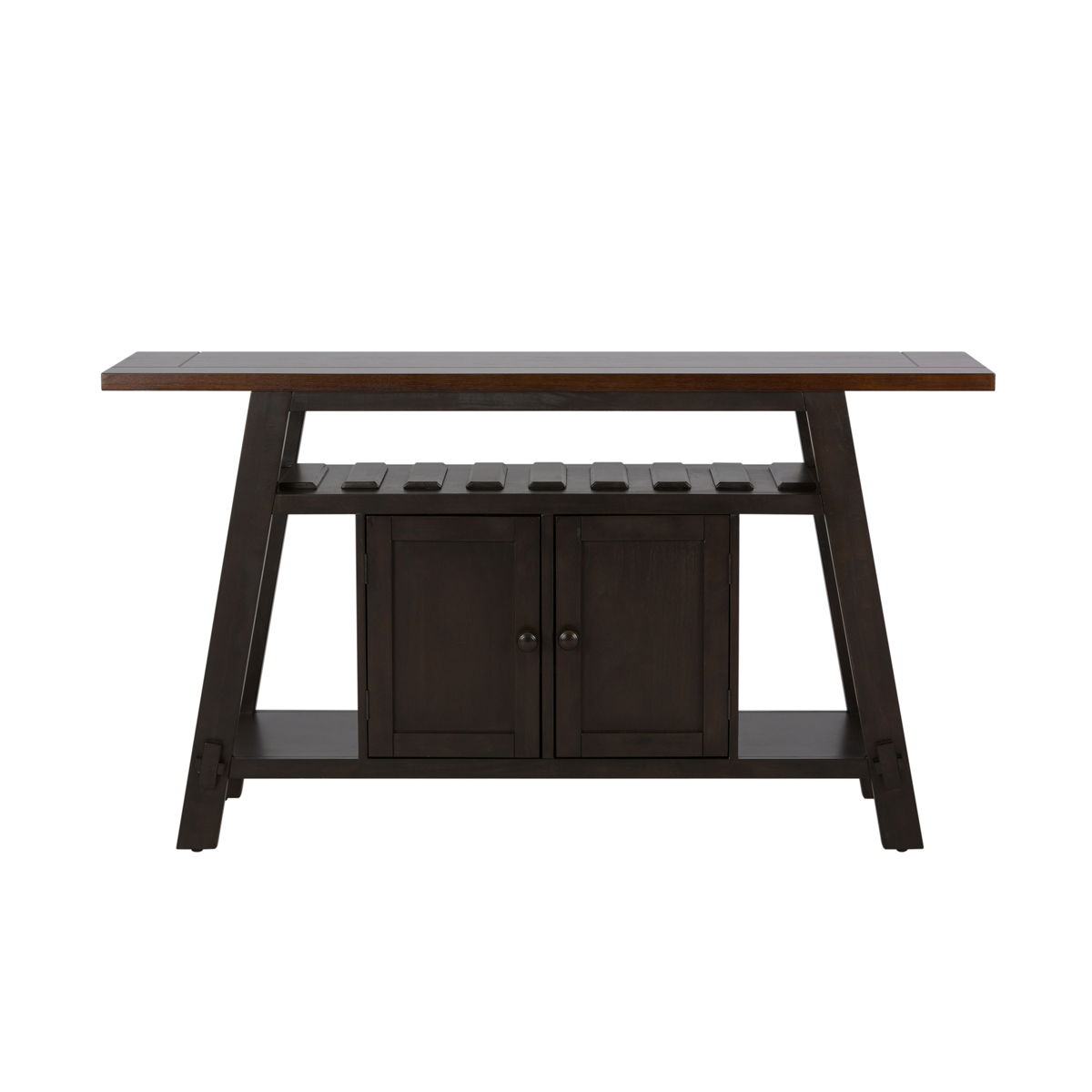 Lawson’s transitional styling works in any decor. The two-tone finish is as durable as it is beautiful with the UV Top Coat that protects the table top from scratching and marring. The trestle base features a center shelf for storage. The easy glide system makes it a snap to open the table and add the butterfly leaf. The server is a unique open design with angled legs and shelves that allow for display storage.