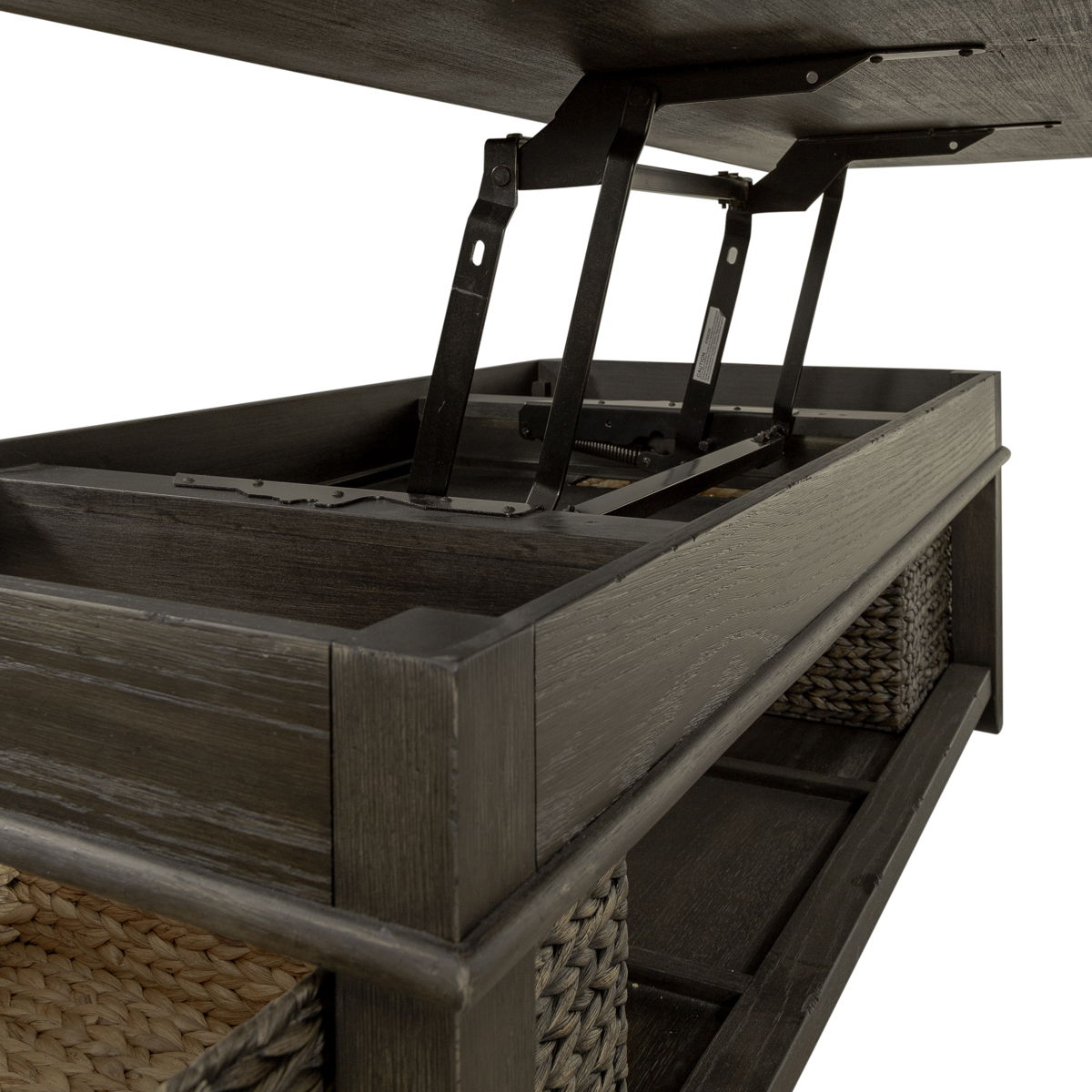 Transitional style is a marriage of traditional and contemporary furniture, finishes, materials, and fabrics equating to a classic, timeless design. Furniture lines are simple yet sophisticated, featuring either straight lines or rounded profiles. The transitional style is one of the most popular styles used to decorate homes. It incorporates design elements from a variety of centuries, which allows homeowners to feel comfortable and elegant at the same time. The transitional style features warm, rich colors that are very inviting. The Mill Creek collection offers lots of function with a lift top cocktail, storage baskets and a storage wall that could be used for your mud room or entryway.