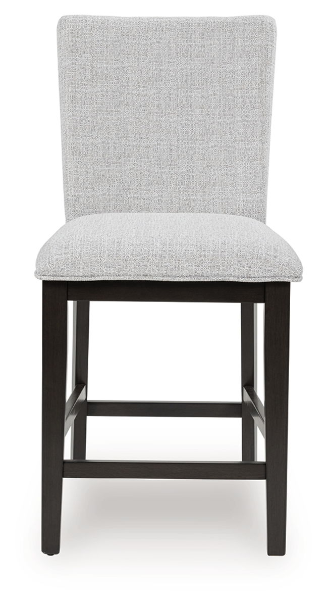 This counter height bar stool is the perfect blend of casual and contemporary styles. Its easy-clean Next-Gen Nuvella™ upholstery remains vibrant and resists stains for added convenience, while a dark grayish brown finish keeps the look right on trend. Expertly balancing high style and low maintenance, it brings both flair and function to dining.