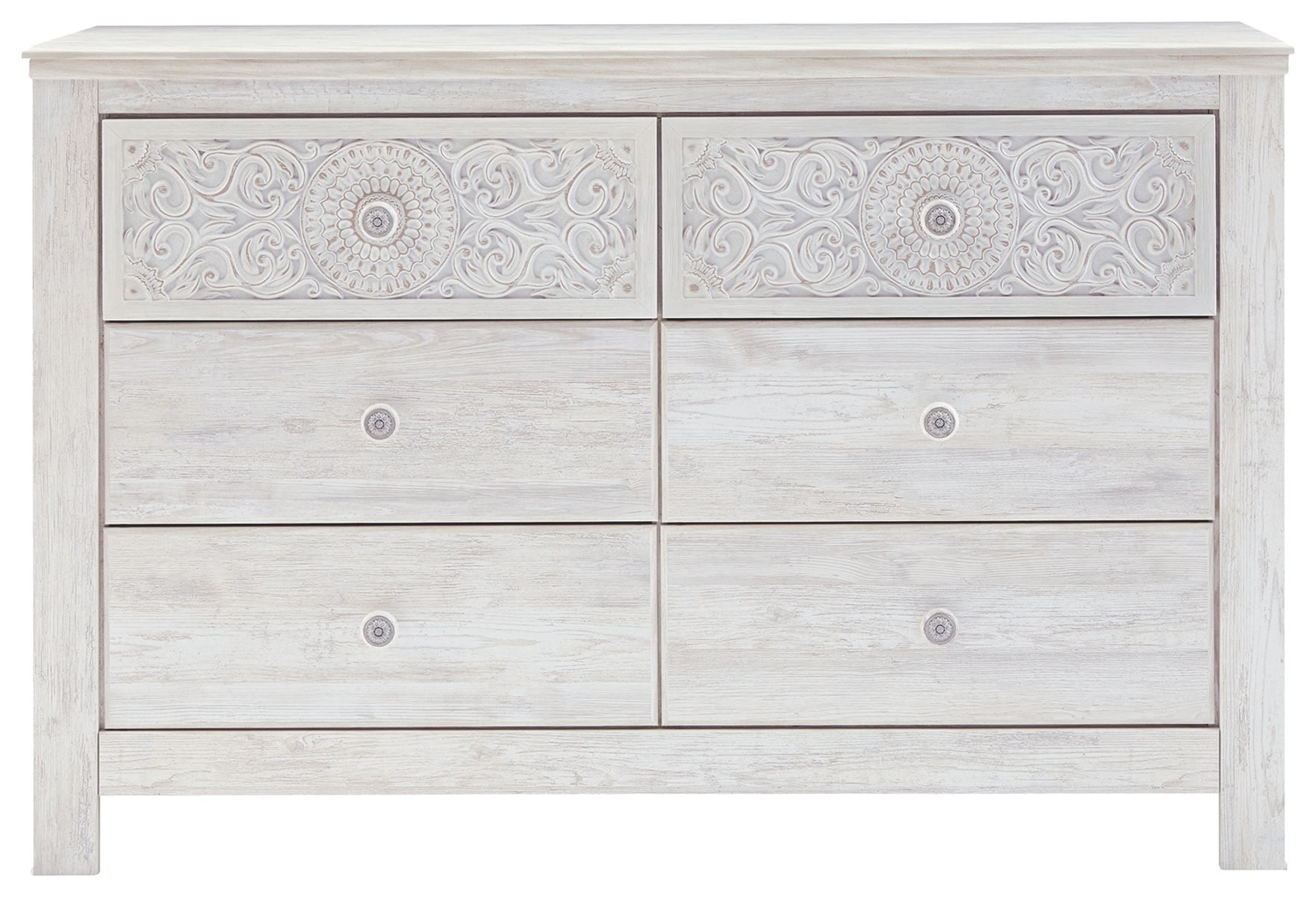 If it’s coastal chic or cottage quaint style you long for, this whitewashed dresser invites you to go to town. Its distinctive weatherworn finish conveys an easy-breezy sensibility, perfect for a restful bedroom retreat. Tastefully edited lines and medallion drawer pulls give this attractively priced dresser a high-end aesthetic.