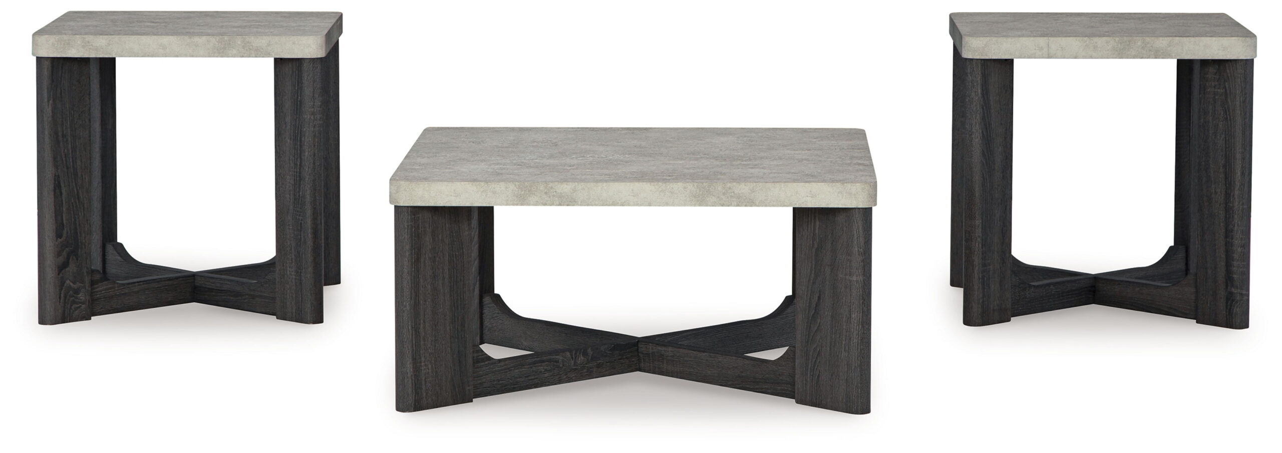 Isn’t it time for a change? This table set captures the essence of today’s casual contemporary design. The thick tabletop sits on profiled legs and a stylish cross stretcher with a charcoal gray wood grain look. These tables exude a relaxed flair that’s sure to complement your good taste.