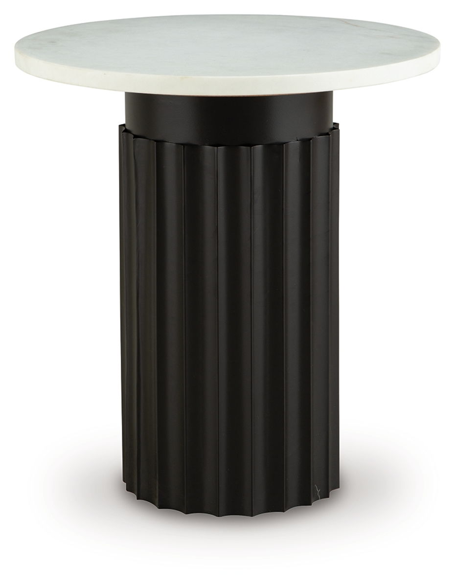 On trend and totally captivating, this accent table is proof positive that big style can come in small packages. Your curated approach to interior design is reflected in its contrast of white marble and black metal. Fluted details on the base add an extra dash of contemporary flair. Whether this table is next to a chair or on its own as an accent piece, it’s utterly cool.