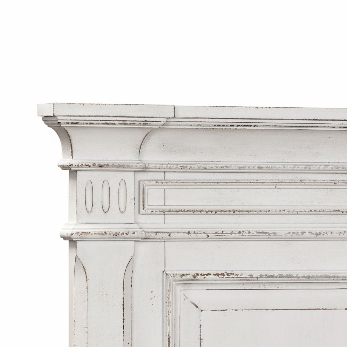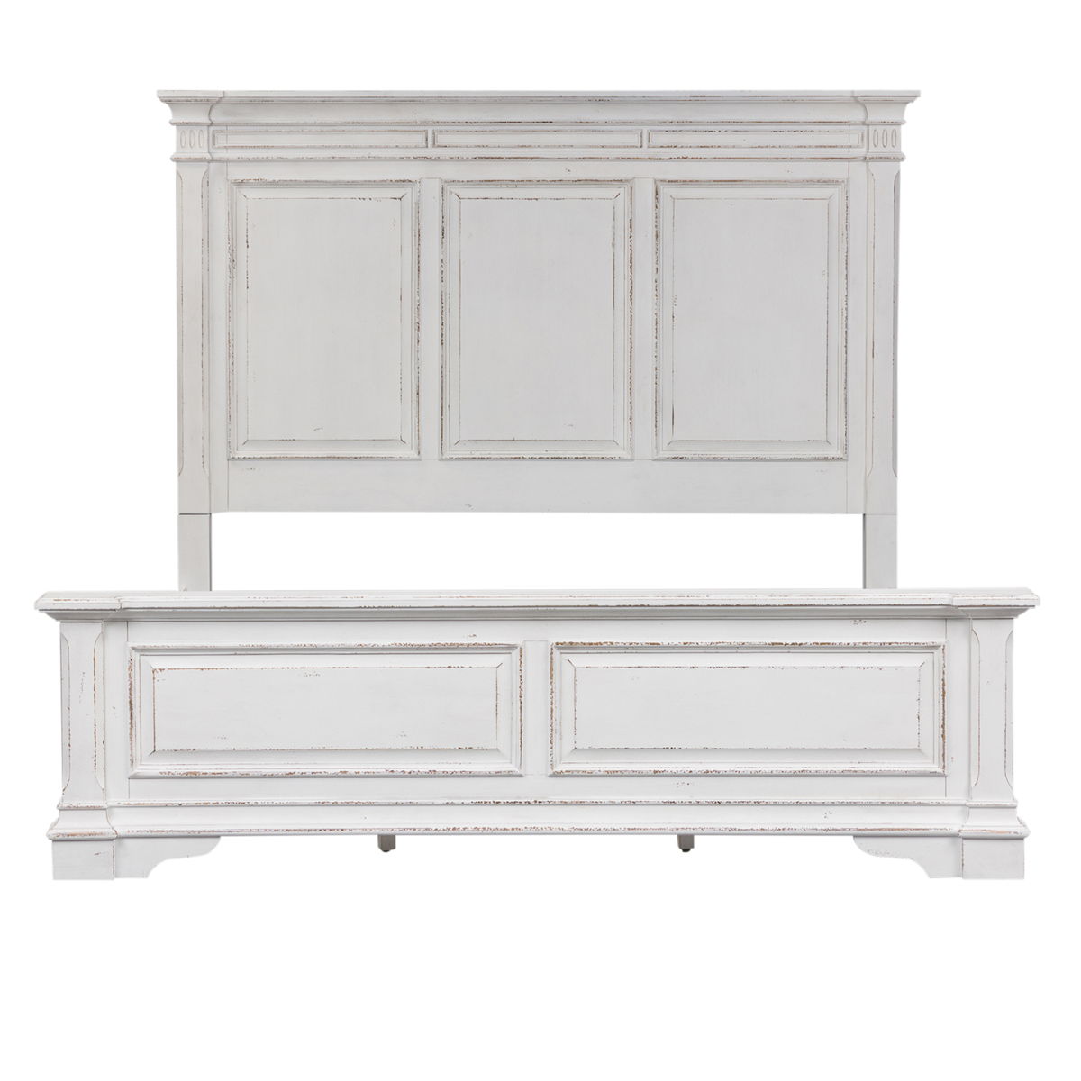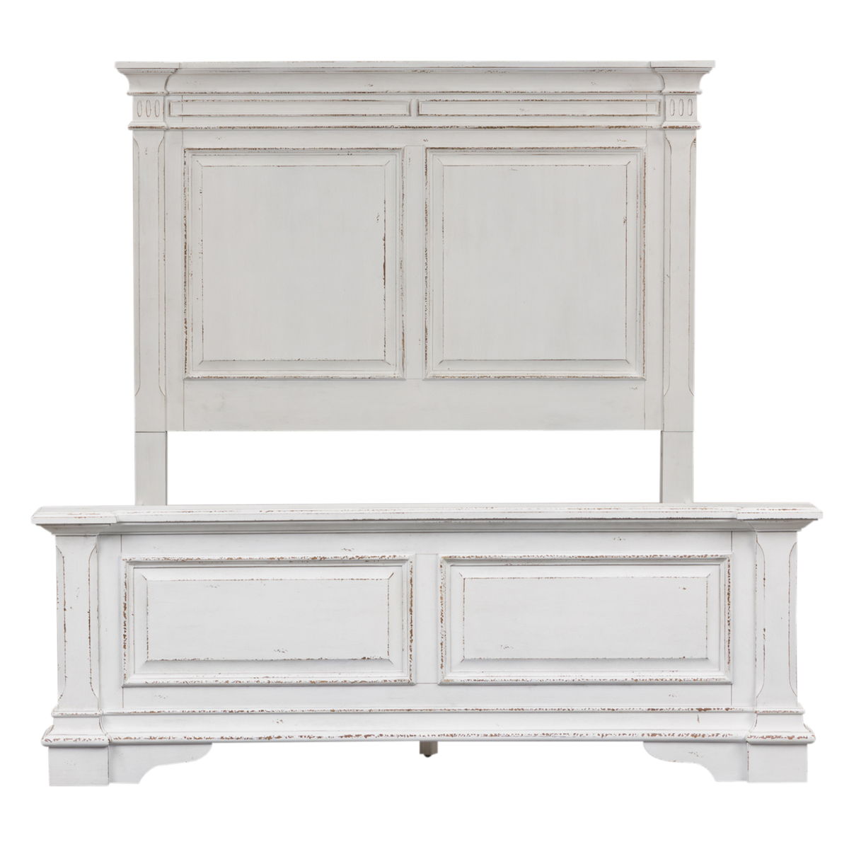 This panel bed is the perfect way to accent your room with an effortless blend of European Traditional design. Crafted with poplar solids and cathedral white oak veneers, this piece features a bolt on rail system and a center support slat system. The antique whitewash combined with heavy chipping, creates a truly unique look.