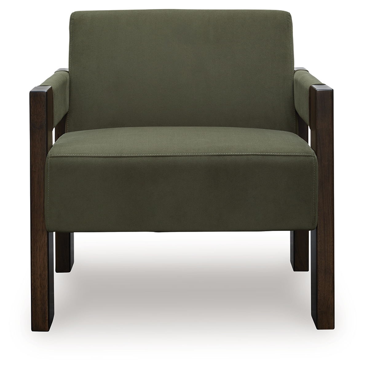 This accent chair is an ultra-contemporary addition to your seating area. Warm hued wood and neutral faux leather harmonize beautifully for a luxuriously welcoming vibe. Whether you’re cozying up with coffee or settling in to stream your favorite show, relaxing has never been so comfortably chic.