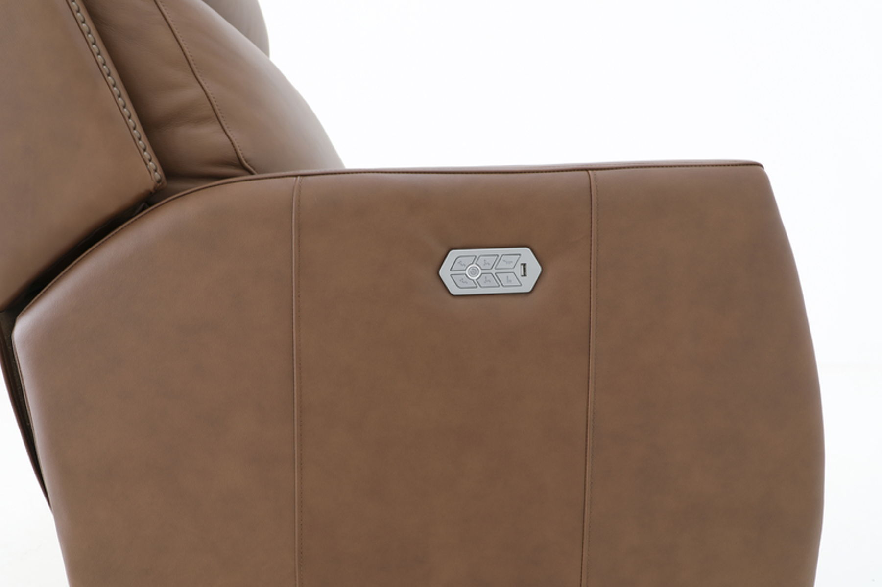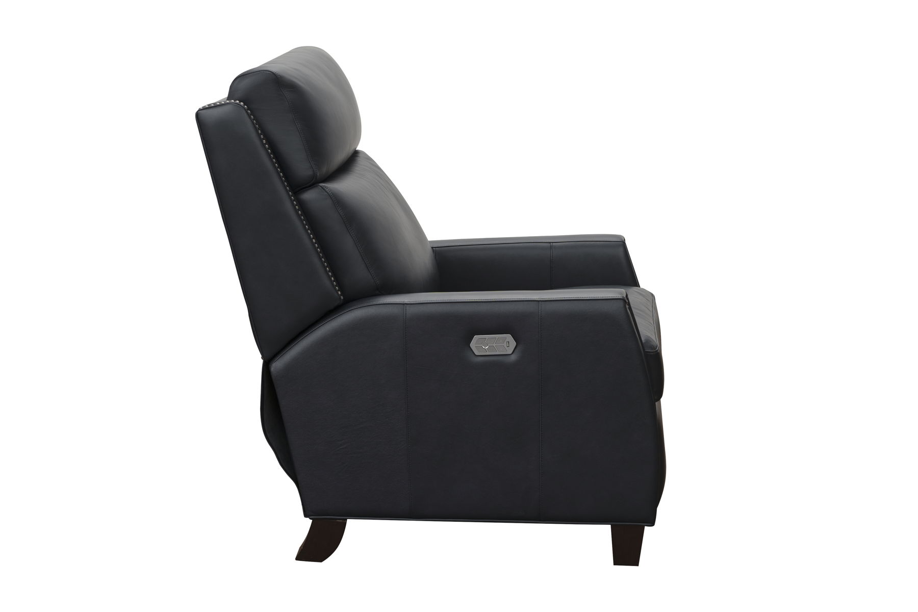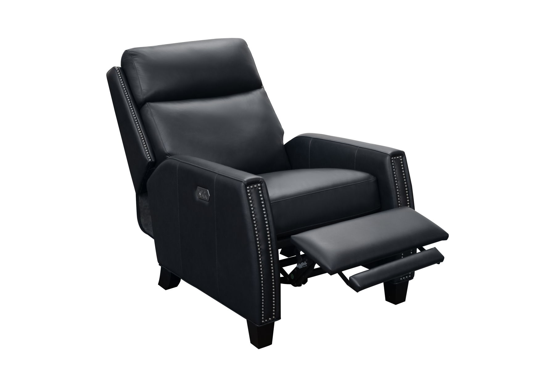 Triple Low Leg Recliner. 44.9” High Pub Back Design, Loose Welted Box Seat Cushion With Pocketed Coil Springs Encased In Foam, Wrapped In Dacron With A Feather Blend Topper, Footrest Extension, Nail Head Trim Accents, And Tapered Wood Legs Finished In A Warm Finish.