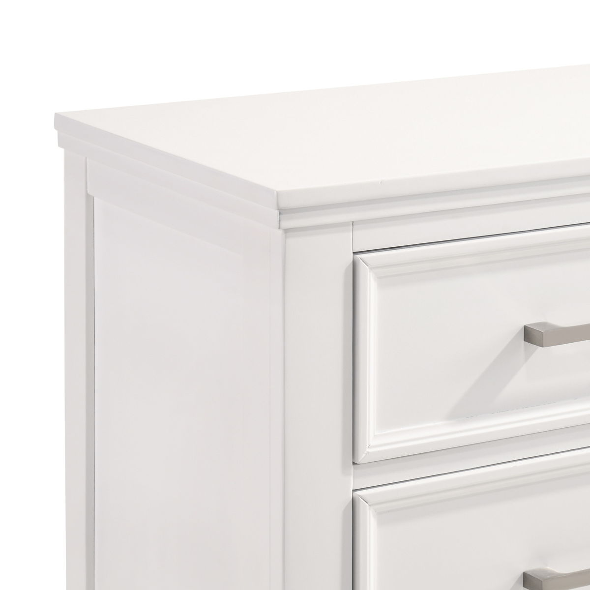 The Andover Two Drawer Wood Nightstand combines durability, functionality, and timeless style, making it a perfect addition to any bedroom. Expertly crafted from solid Rubberwood, manufactured woods, and wood veneers, this nightstand is built to last while showcasing the natural beauty of real wood. The rich finish, achieved through a meticulous multi-step process including sand-throughs and white glazing, imparts a weathered yet sophisticated appeal, beautifully highlighting the wood’s natural grains and unique characteristics. The clean lines of the Andover nightstand are enhanced by sleek, elongated metallic handles that add a touch of sophistication, standing out against the warm, dark wood finish. Framed drawer fronts add depth and dimension, while the sturdy block-style legs provide a solid and stable foundation, underscoring the nightstand’s robust and enduring structure. The drawers glide smoothly on Kenlin drawer glides, ensuring effortless operation, and feature dovetail joinery, a true mark of superior craftsmanship. This nightstand not only offers practical storage but also elevates the style of your bedroom with its modern rustic design.