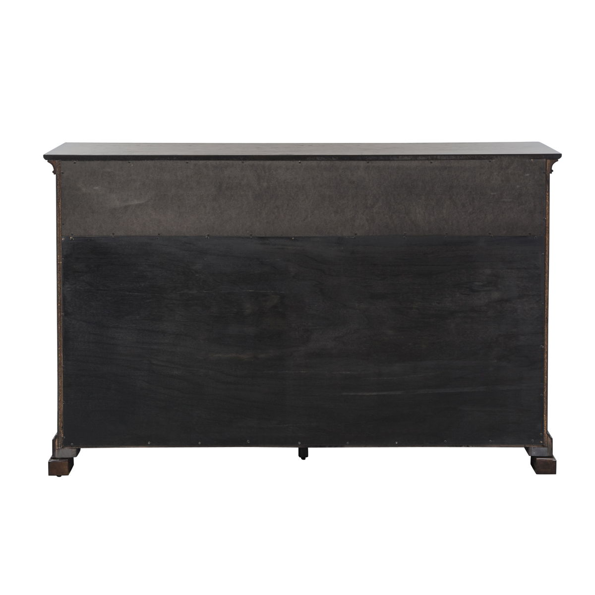 Armand, inspired by a 17 century French antique. Pulling in Tuscan elements for the dining the rectangular trestle table features heavy square turned bases. Square back, armless upholstered chairs feature linen upholstery with a nail head trim on the base of the chair. The buffet features 4 door panels with overlays and pilasters chamfered for a soft appeal. Cases feature overlays on the top drawers, framed drawer panels, block feet and chamfered posts. Media features drop down fronts so it can double as a small dresser with the landscape mirror for smaller spaces.
