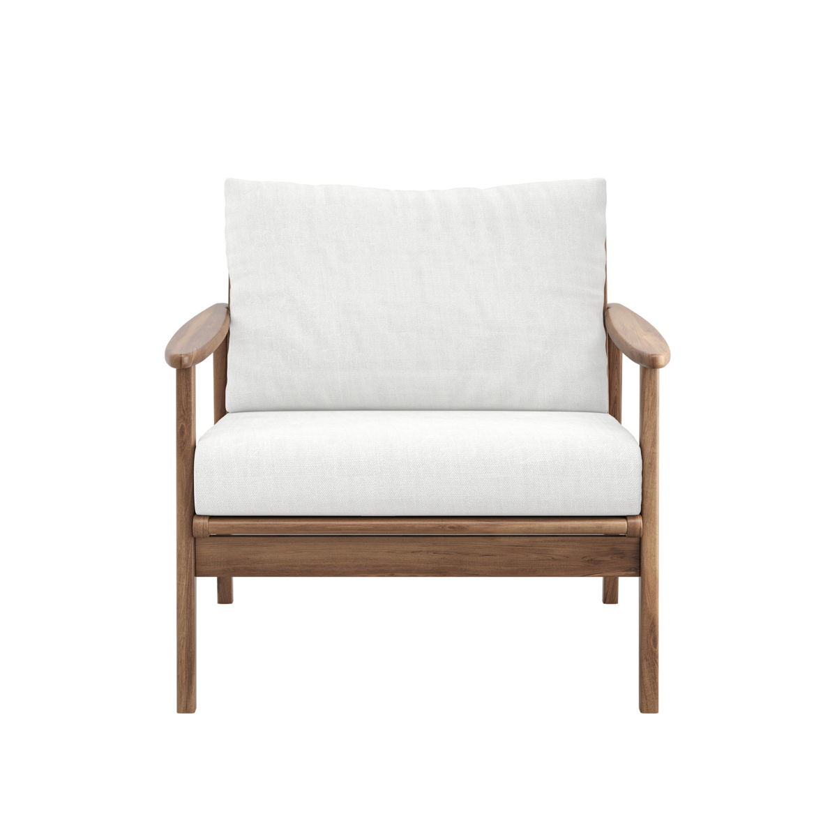 The Ashton Patio Club Chairs, available as a set of two, are designed to provide durability, comfort, and a sleek modern look for any outdoor setting. Constructed from FSC-Certified Acacia solid wood, these chairs offer exceptional strength and natural weather resistance, ensuring they maintain their beauty over time. The multistep clear finish enhances the wood grain while adding a protective layer for long-lasting durability. Upholstered in fade-resistant, all-weather Sundura™ fabric, these chairs provide superior protection against fading, mildew, and moisture, keeping them vibrant and fresh season after season. The high-density 12cm foam seat and back cushions offer resilient support and lasting comfort for relaxing outdoor experiences. With their clean, straight lines, slatted back design, and low-profile frame, the Ashton Club Chairs bring a minimalist yet functional elegance to your outdoor space, making them a perfect choice for stylish relaxation.