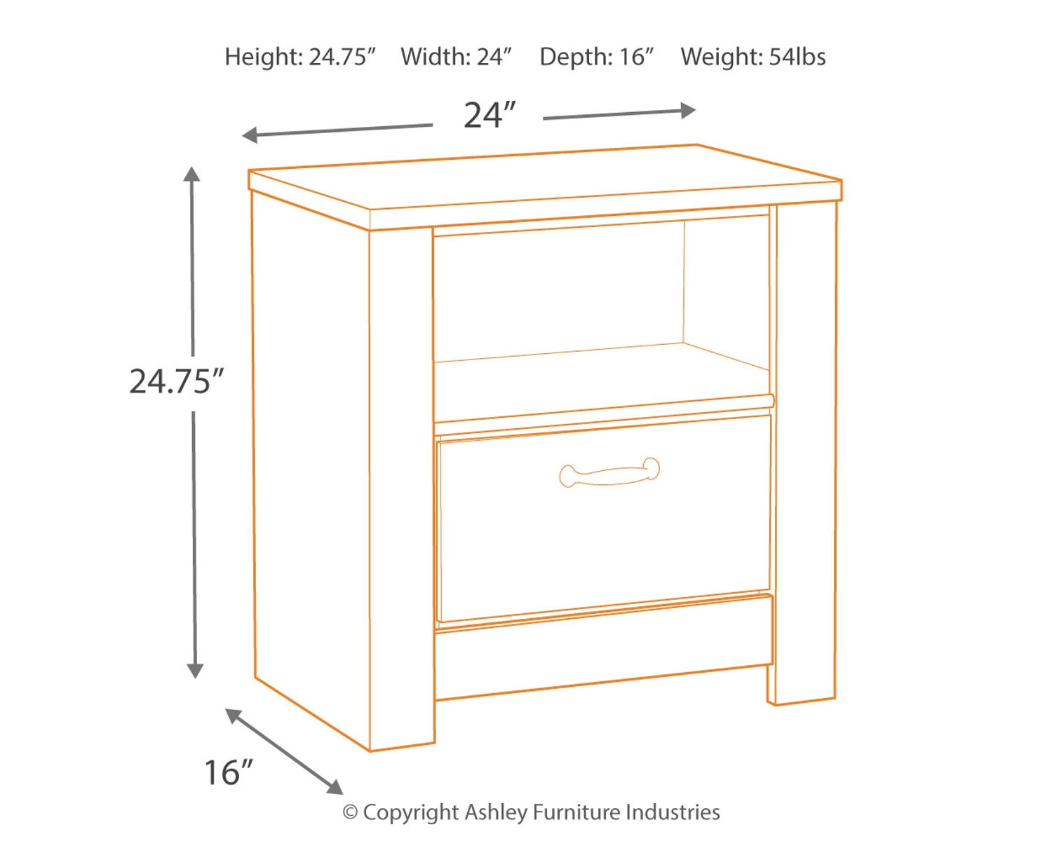 Your bedroom isn’t just a room. It’s a canvas. Express your farmhouse style with this nightstand. Wispy white finish over replicated oak wood grain brightens up the space with charm. Brushed nickel-tone handles with black edging finesse the piece with a bit of shine. Drawer is spacious and lined with faux linen laminate to hold your belongings with care. This clean-lined profile is the perfect authentic foundation for inviting decor.