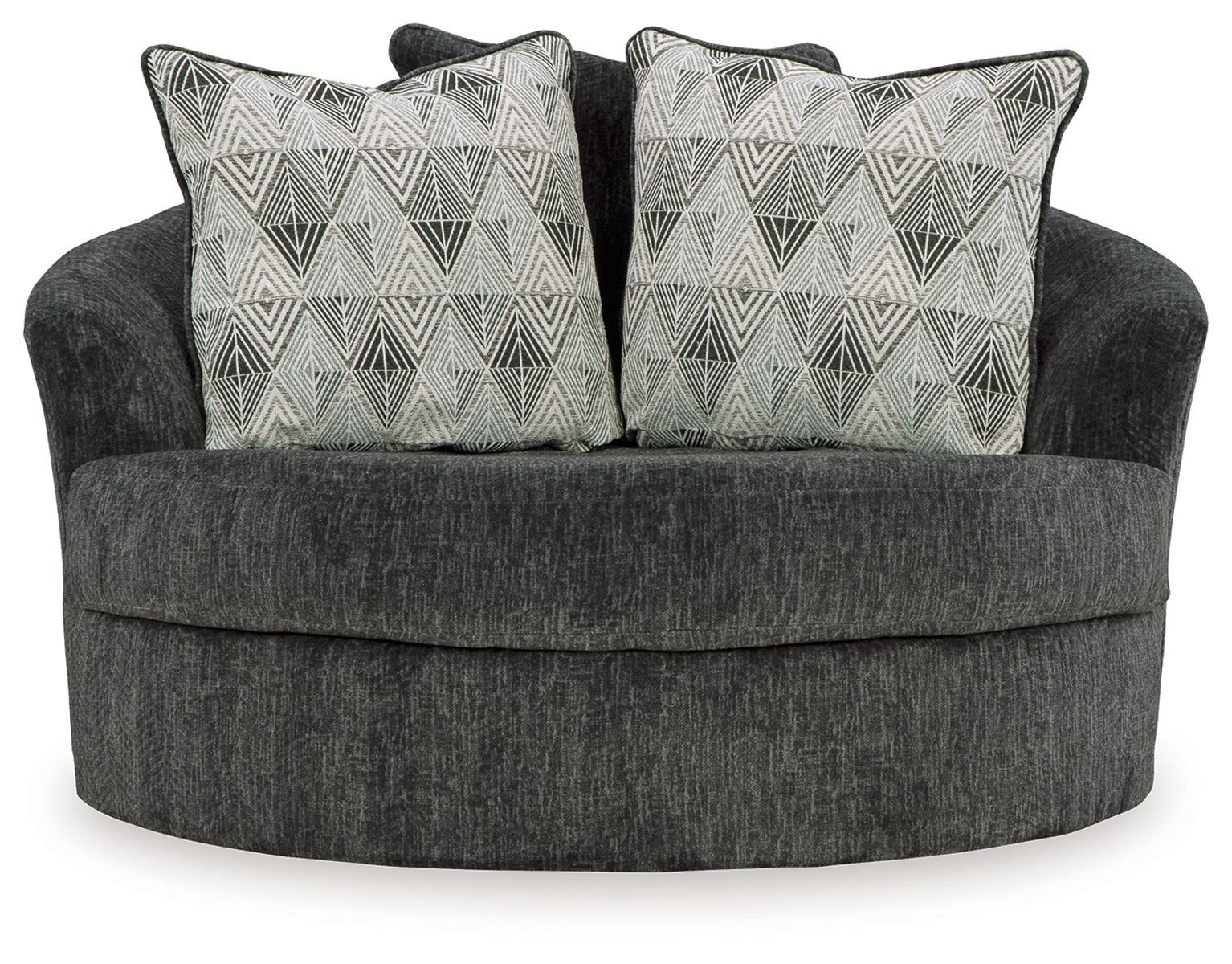 Bring fashionable function to the forefront with this oversized swivel accent chair. The transitional design gets a dash of flair with a 360-degree swivel motion. Dress it up or down. In a richly versatile neutral, this chair appeals to a variety of style personalities.