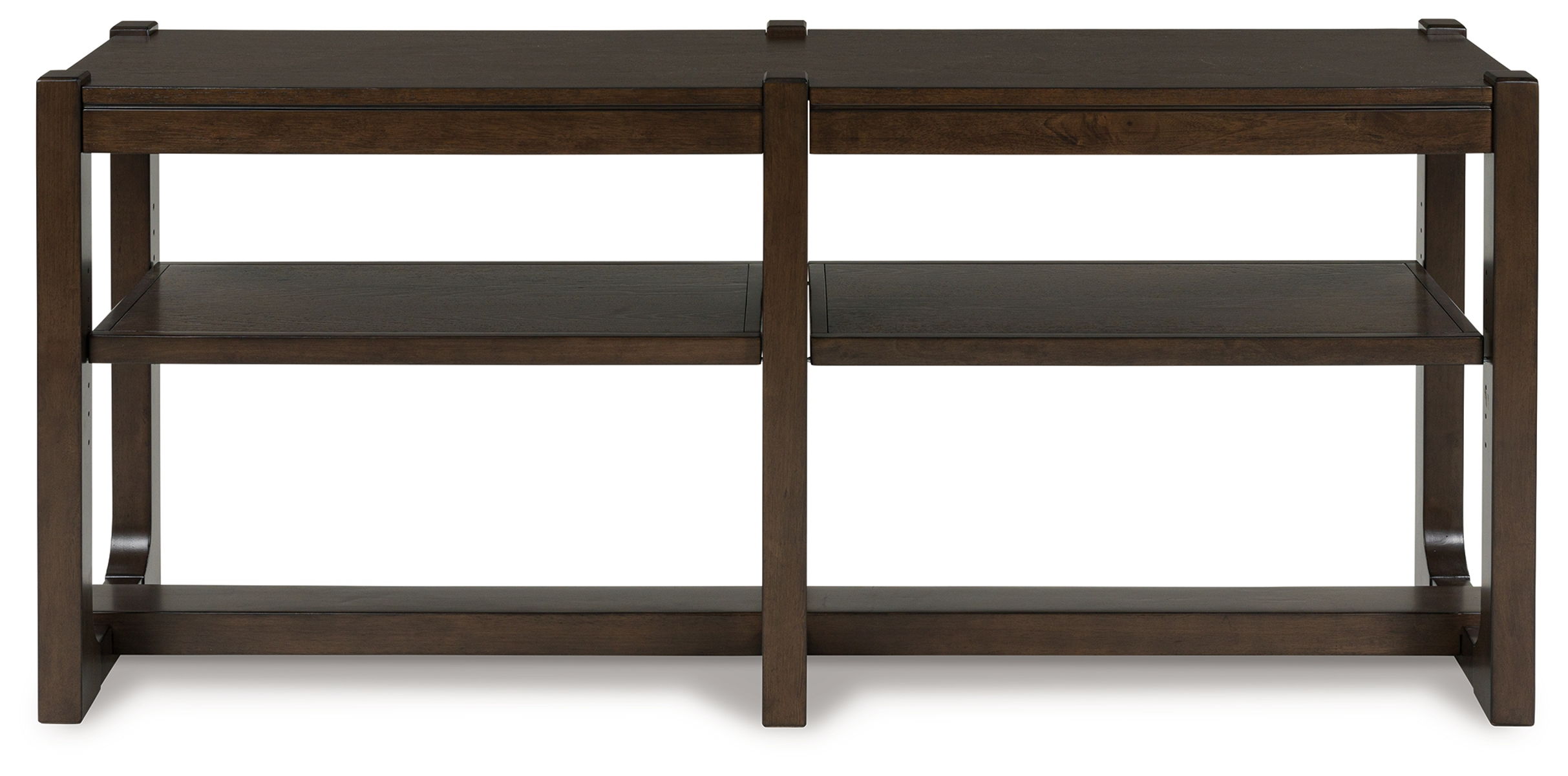 If casual contemporary style is your thing, then you’ll love this sofa table. A wood-tone finish with a rich, dark grain contrast lends a soothing sensibility, while two independent adjustable shelves add function to great form. Sleek and stylish, this versatile piece is also ideal as a TV stand or console bookcase. What a fresh take on cool for the modern home.