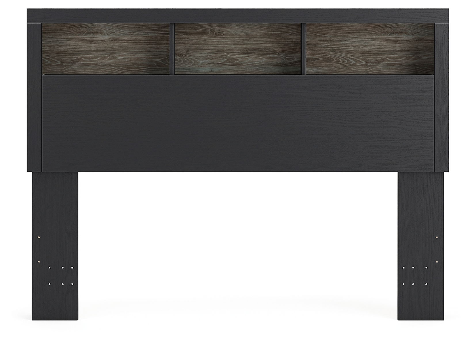 This bookcase headboard evokes the tranquil vibe you long for in your dream destination. Its two-tone textured look marries a rustic finish and a matte finish over replicated oak grain for neutral appeal. Both functional and versatile, its three open cubbies add space-saving storage, keeping favorite toys, books and other bedtime essentials within easy reach.