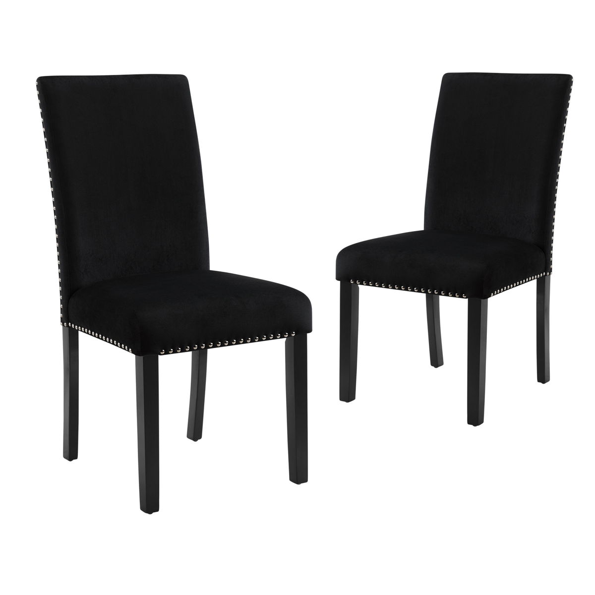 Introducing the New Classic Furniture Celeste Dining Chair – a set of two chairs that seamlessly blend comfort with contemporary elegance. Crafted with solid Rubberwood legs, these chairs boast quality construction, ensuring a strong and stable seating solution for your dining space. The upholstery covers sumptuous memory foam cushions, offering both softness and durability for an easy-care, luxurious seat. The espresso legs, coupled with glimmering silver nailhead trim, add a touch of modern glamour to the plush seating. Setting up these chairs is a breeze with the included easy-to-follow assembly instructions. Elevate your dining experience with the Celeste Dining Chair – where quality, comfort, and style converge effortlessly.