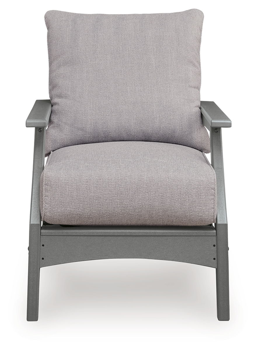 This outdoor lounge chair prioritizes versatile style and comfort, all while providing the durability you need alfresco. Crafted with a sturdy wood-look material in gray, it withstands the elements with ease. Cleanable and UV-resistant Nuvella® fabric rounds out the piece with added function.