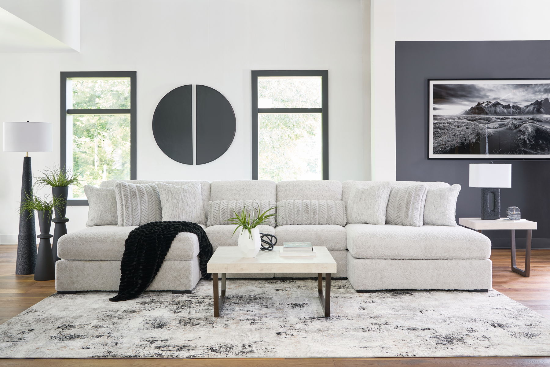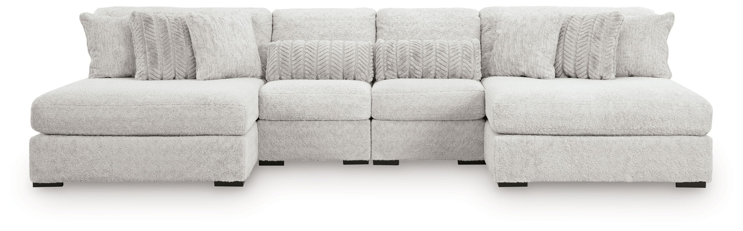 This plush double-chaise sectional is the ultimate spot to unwind after a long day. Its ultra soft upholstery feels luxurious against your skin, while the roomy seats and comfy pillows provide support in all the right places. With plenty of space to stretch out or snuggle up with loved ones, this modular sectional is perfect for movie nights, game days and everything in between.