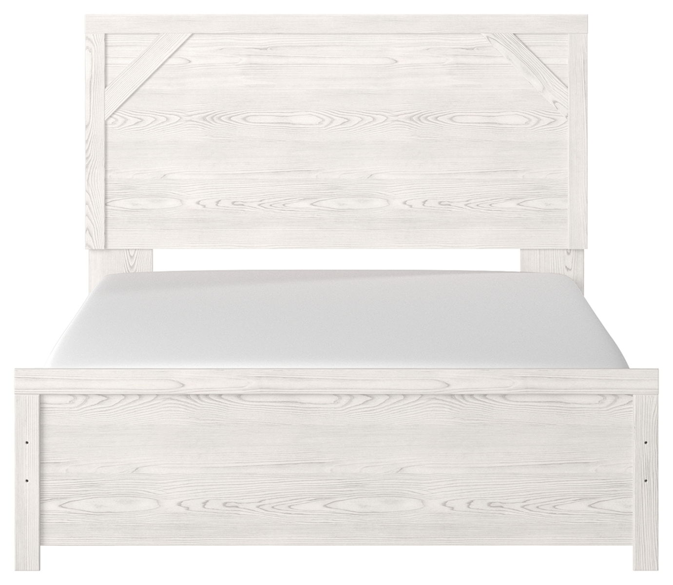 Cool, clean and casually modern. This panel bed’s wispy finish sets the tone for your calming sanctuary. Framed elements and cross-brace accents add dimension and authenticity to the bed’s simply stunning profile.