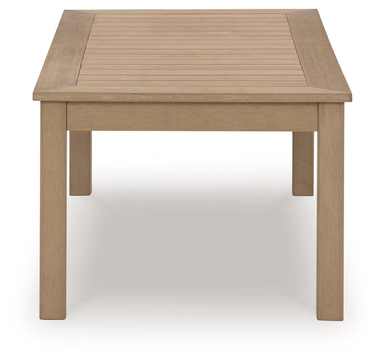 This coffee table is a beautiful addition to any outdoor living space. Effortless in its simplicity, this piece echoes your easygoing sensibilities. Combining durable, cutting-edge engineered materials, its Weatherwood construction in a blond wood color enhances the contemporary design. Pair this table with the matching sofa and chairs for a spectacular backyard or patio seating arrangement.