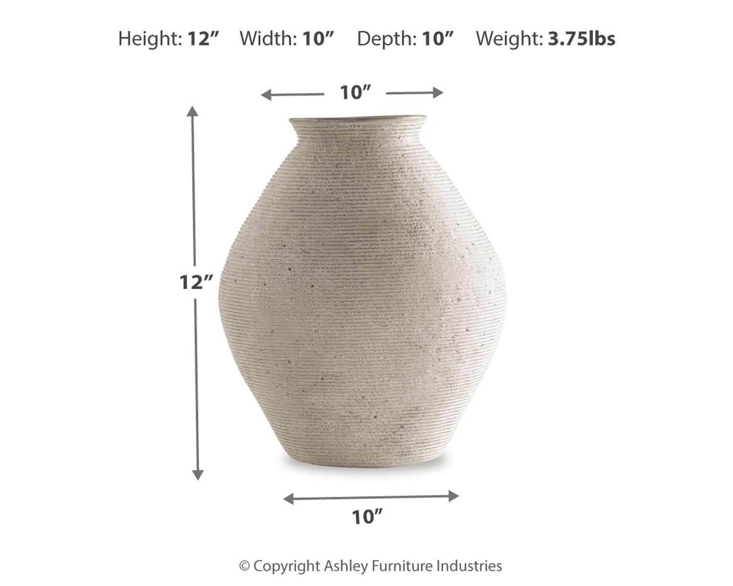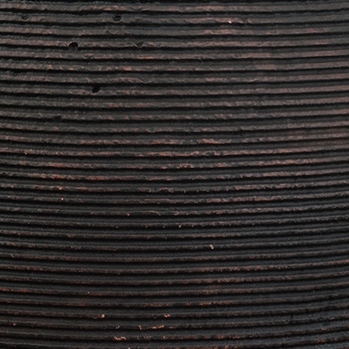 Ribbed textural rings give this vase a wonderful artisanal quality. An antiqued finish catches the eye, drawing attention to this elegantly earthy centerpiece.