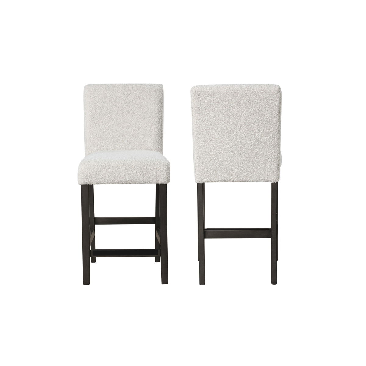The High Line Upholstered Counter Dining Chairs combine durability, comfort, and style to enhance any living space. Each set includes two counter chairs, expertly crafted from solid Acacia and Rubberwood, along with high-quality manufactured woods and Birch veneers, ensuring durability and stability. The luxurious bouclé fabric offers exceptional durability, making these chairs ideal for frequent use. The unique looped texture provides a plush, comfortable seating experience, adding both elegance and longevity to your dining area. Perfect for dining rooms, home offices, or as accent chairs in living spaces, these chairs add both functionality and aesthetic appeal. The High Line Upholstered Counter Chairs seamlessly blend into various interior designs, making them a versatile and stylish addition to any home.