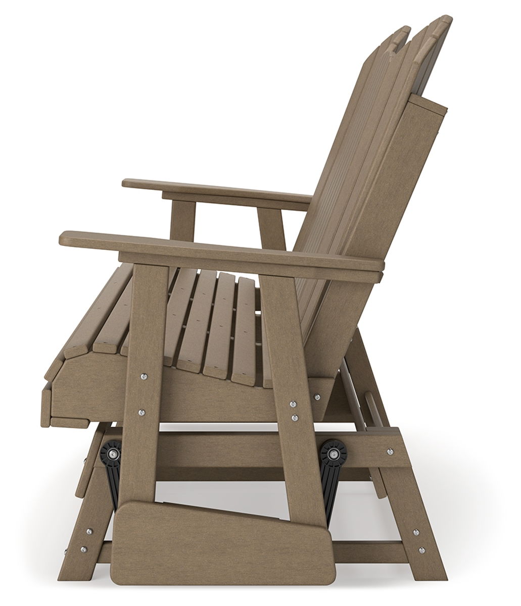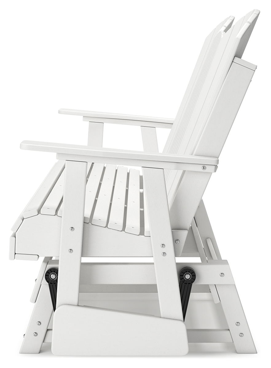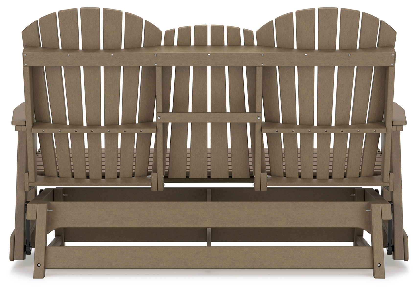 Drift away from everyday worries and into outdoor bliss with this glider loveseat. The Adirondack-inspired design has a classic feel. It weathers sunny summer days and cozy winter nights with durable MEGA-TUFF® HDPE material. A drop-down console with integrated cup holders keeps refreshments and snacks within easy reach. With the console snapped into the back, this loveseat has even more room for enjoying lazy days in the shade.