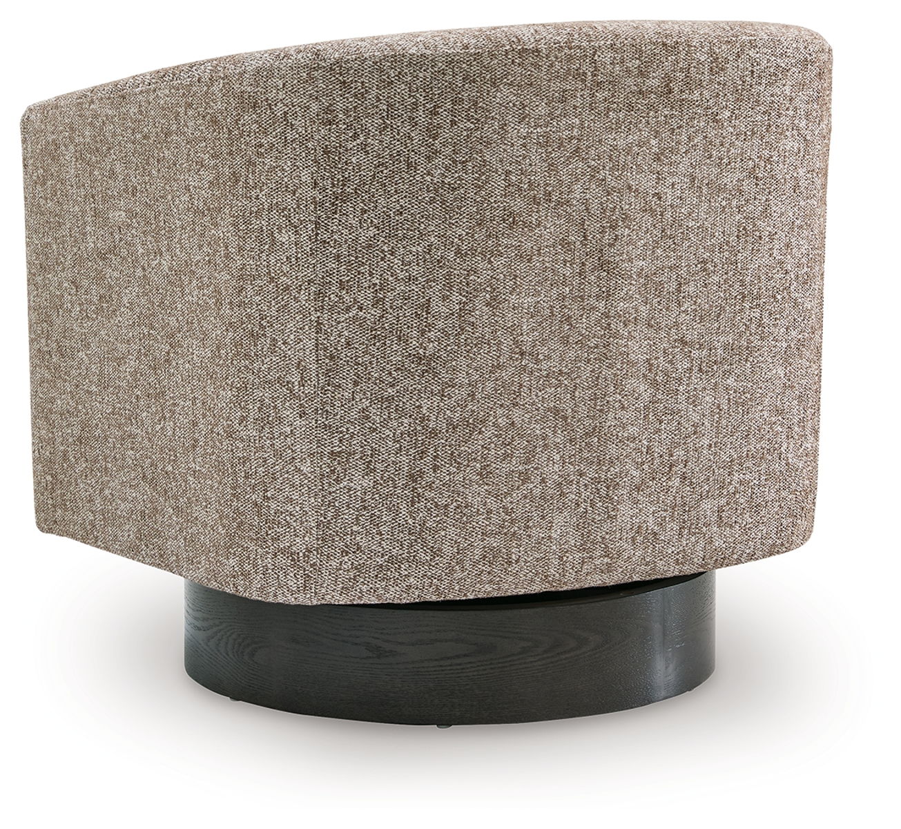 Button up your relaxed aesthetic. This swivel accent chair expertly pairs a sturdy feel with refined style that’s made for the everyday. Complete with chic brown and white upholstery and a brown oak veneer swivel base, it’s a welcome addition to casual spaces.