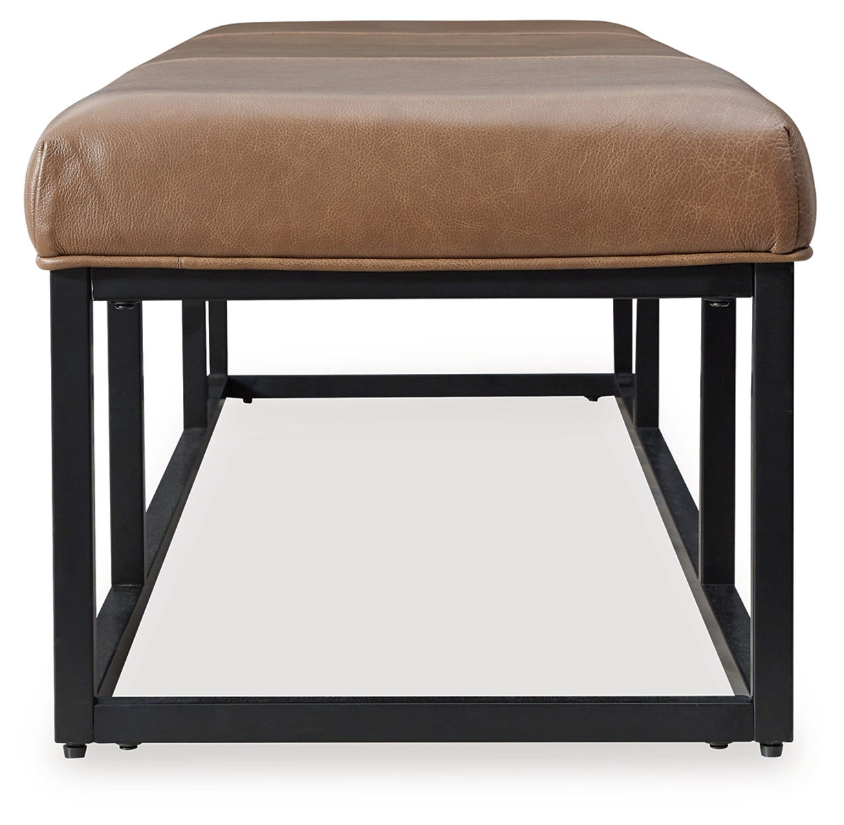 This accent bench takes a contemporary approach to everyday function. Showcasing a sleek combo of caramel leather upholstery and a black frame, it’s a chic and convenient seating solution. Place this bench by the entryway, or at the foot of your bed, as a spot for slipping on shoes or resting bags and purses.