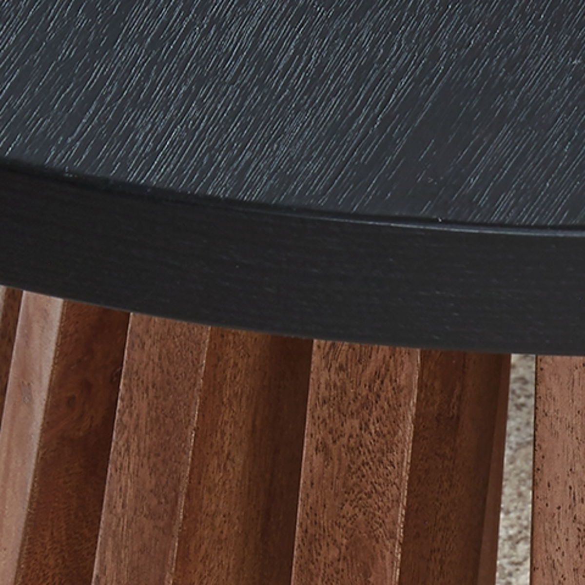 Double down on casual chic with the two-tone look of this end table. With its warm brown and matte black finishes, it reflects your eye for modern design. The trend-right slatted styling on the base brings added charm.