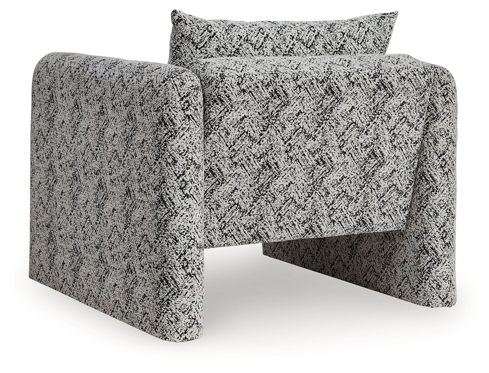 This fashion-forward accent chair keeps comfort and contemporary style at top of mind. Its eye-catching black and white geometric pattern makes a bold statement while remaining versatile enough to pair with other neutrals or pops of color. A low-profile back and streamlined silhouette lend a sophisticated, trend-right vibe to your space.