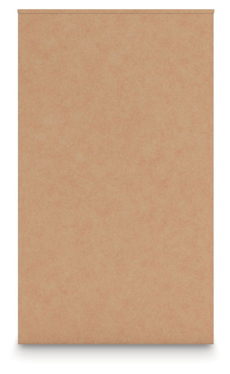 - Drawer interiors are lined with a faux linen laminate for a clean, finished look