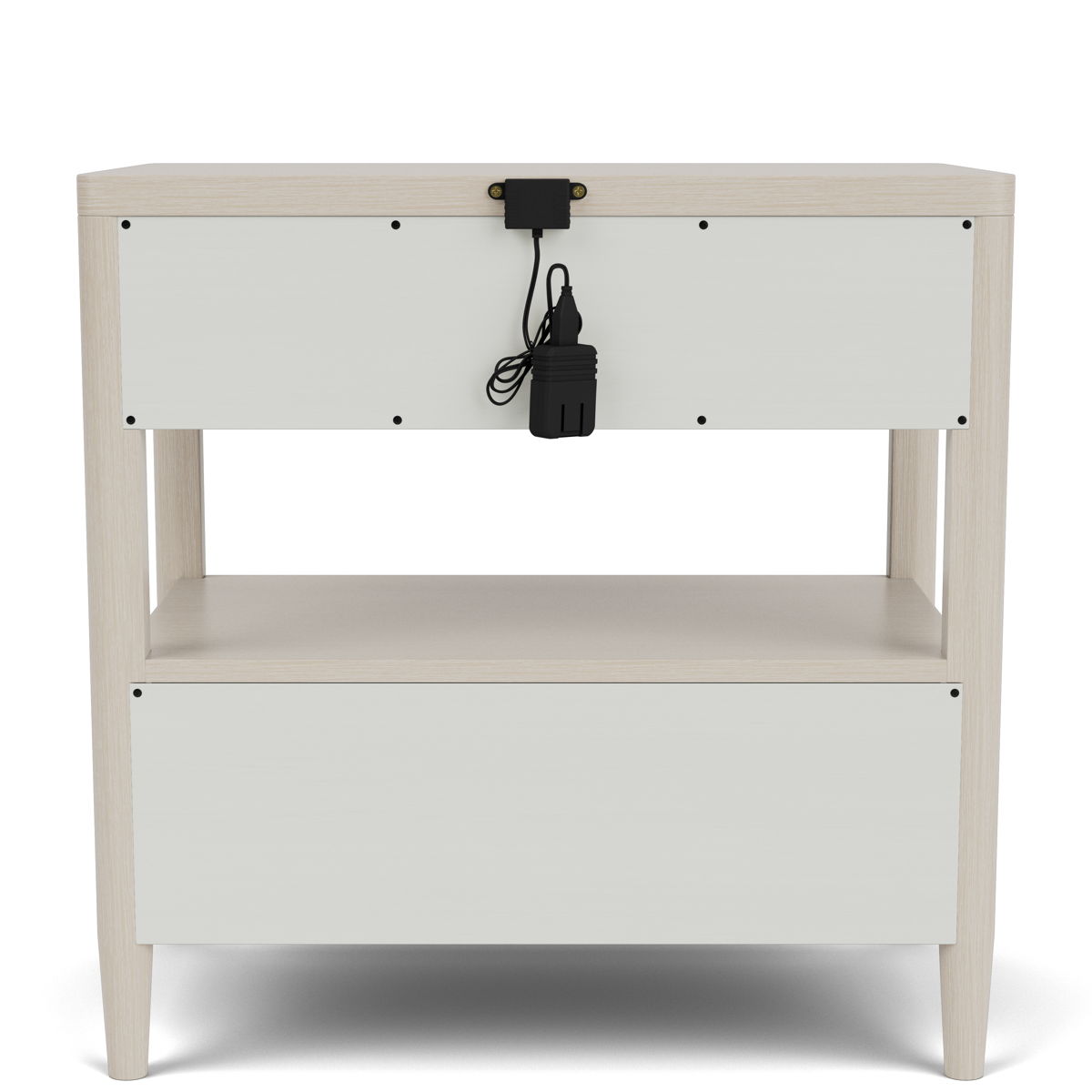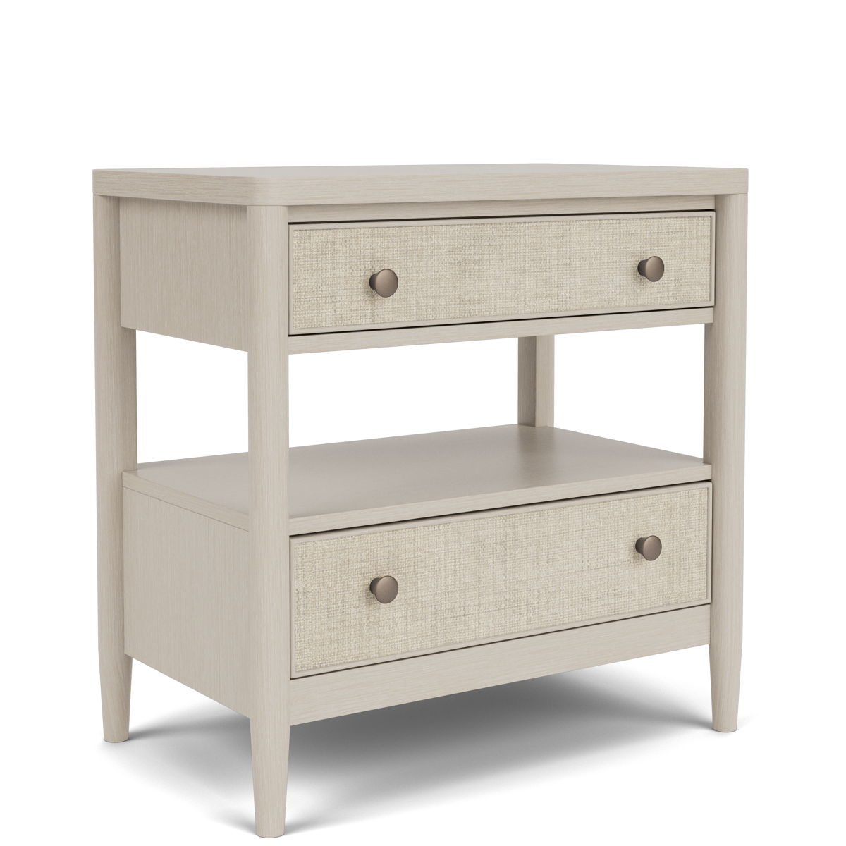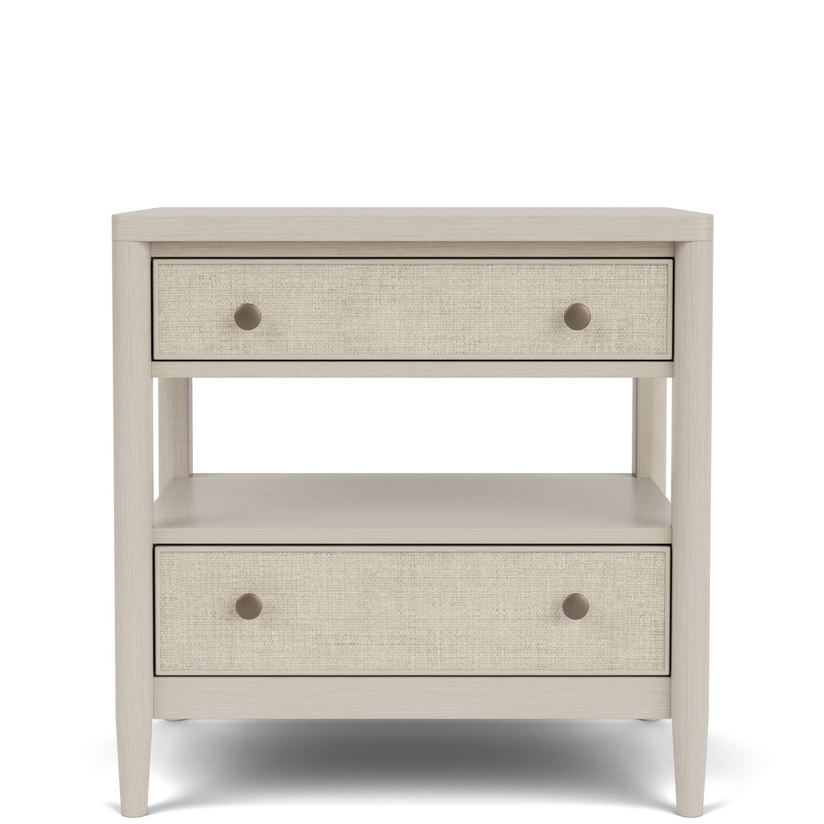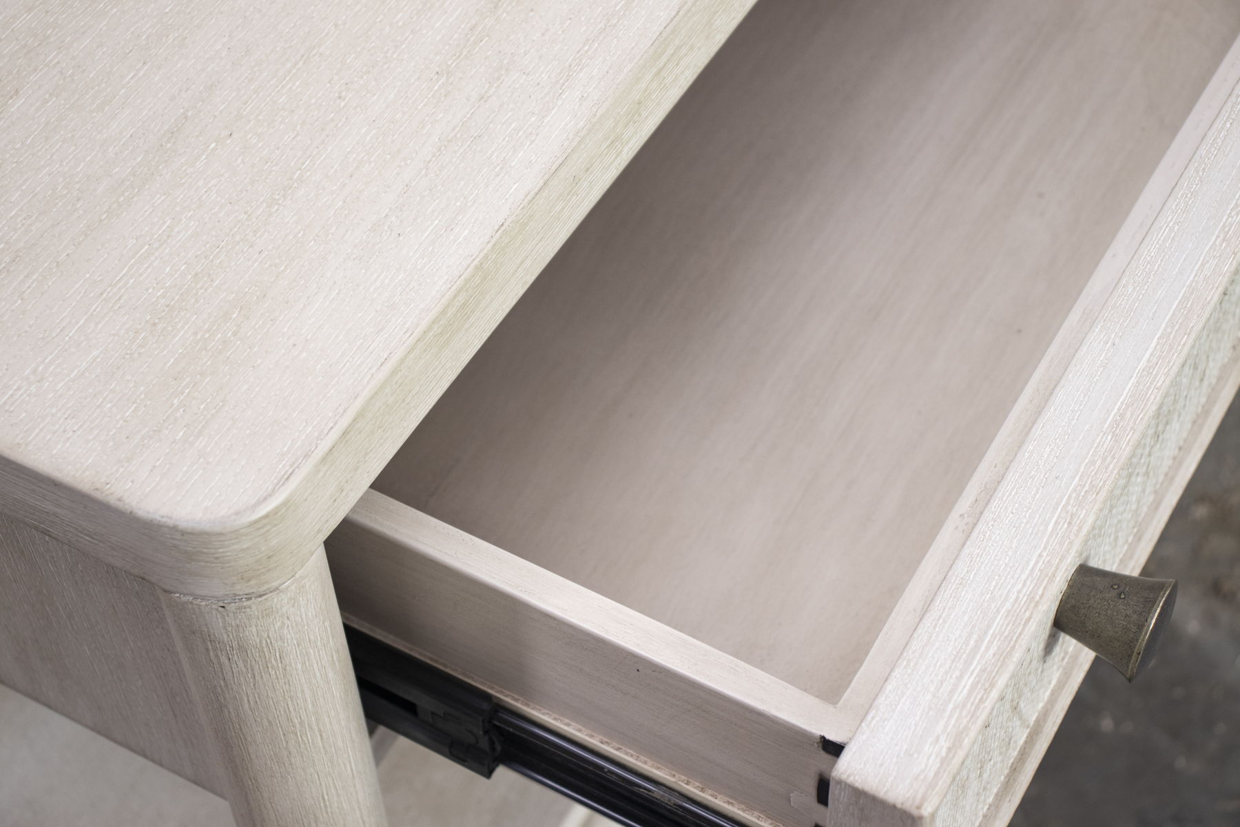 - Two drawers are constructed with dovetail joinery and ball-bearing extension guides