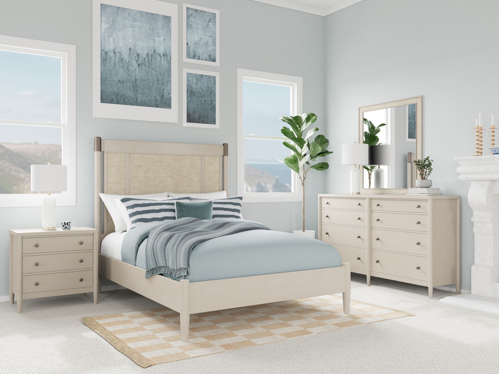 - Natural woven material on frame