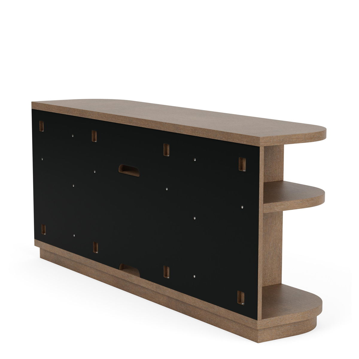 - Constructed with Rubberwood solids and Random Matched Quartered Oak veneers