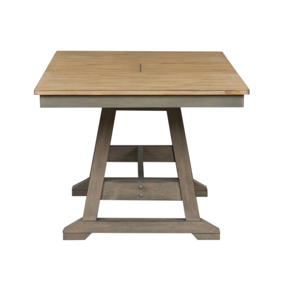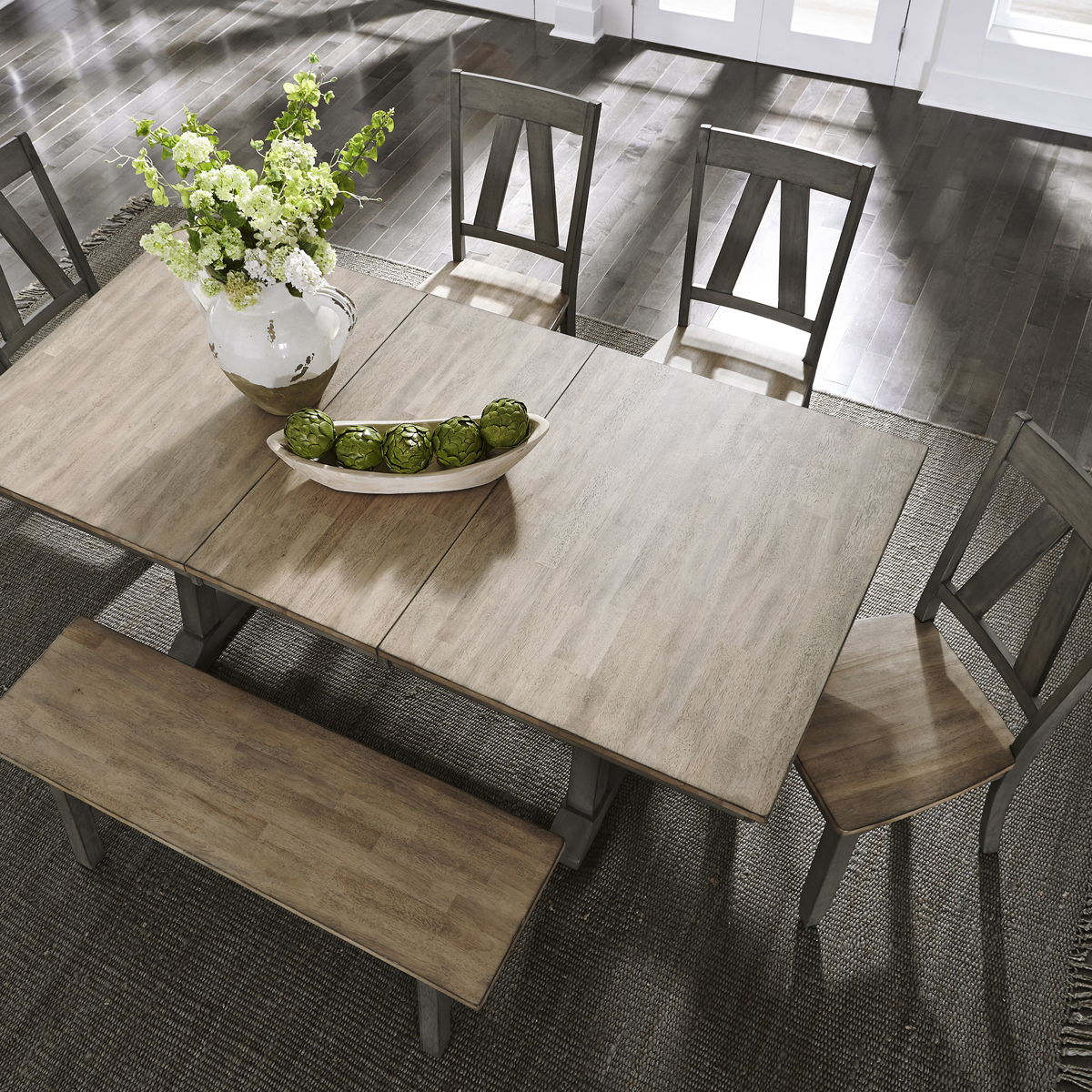 Wow family and friends with the Lindsey Farm trestle table. Crafted of rubberwood solids and veneers. The trestle table features an 18” self-storing butterfly leaf on an easy glide track system for easy opening and is anchored by splayed bracket feet with a center trestle. Lindsey Farm offers looks that easily work in today’s homes with style uncompromised and comfort abound.