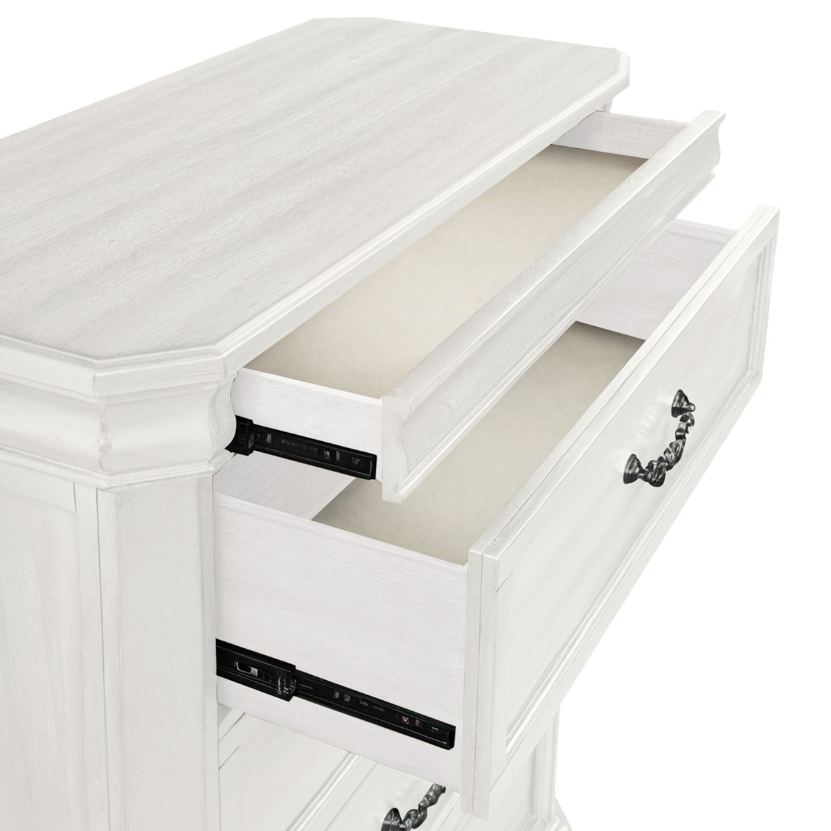Introducing the Lyndhurst Chest — a harmonious blend of style and functionality for your bedroom. Crafted from solid Acacia, Acacia veneers, and manufactured wood, this chest ensures lasting strength and durability to withstand everyday use. Its heirloom finish, achieved through a meticulous multi-step process, adds depth and character to the wood with mild distressing, burnishing, and glazing. The masterful style of this piece is highlighted by its substantial moldings, bracket feet, and ornate hardware, making it a standout statement piece in any room. Inside, the chest features five spacious drawers crafted with English dovetail joinery, full extension drawer glides, and finished interiors, providing ample storage for clothing and accessories. A discreet velvet-lined drawer is concealed behind the top molding, offering a touch of luxury for delicate items, while the bottom drawer is cedar-lined, ensuring optimal storage for sweaters. Elevate your bedroom decor with the stately sophistication of the Lyndhurst Chest