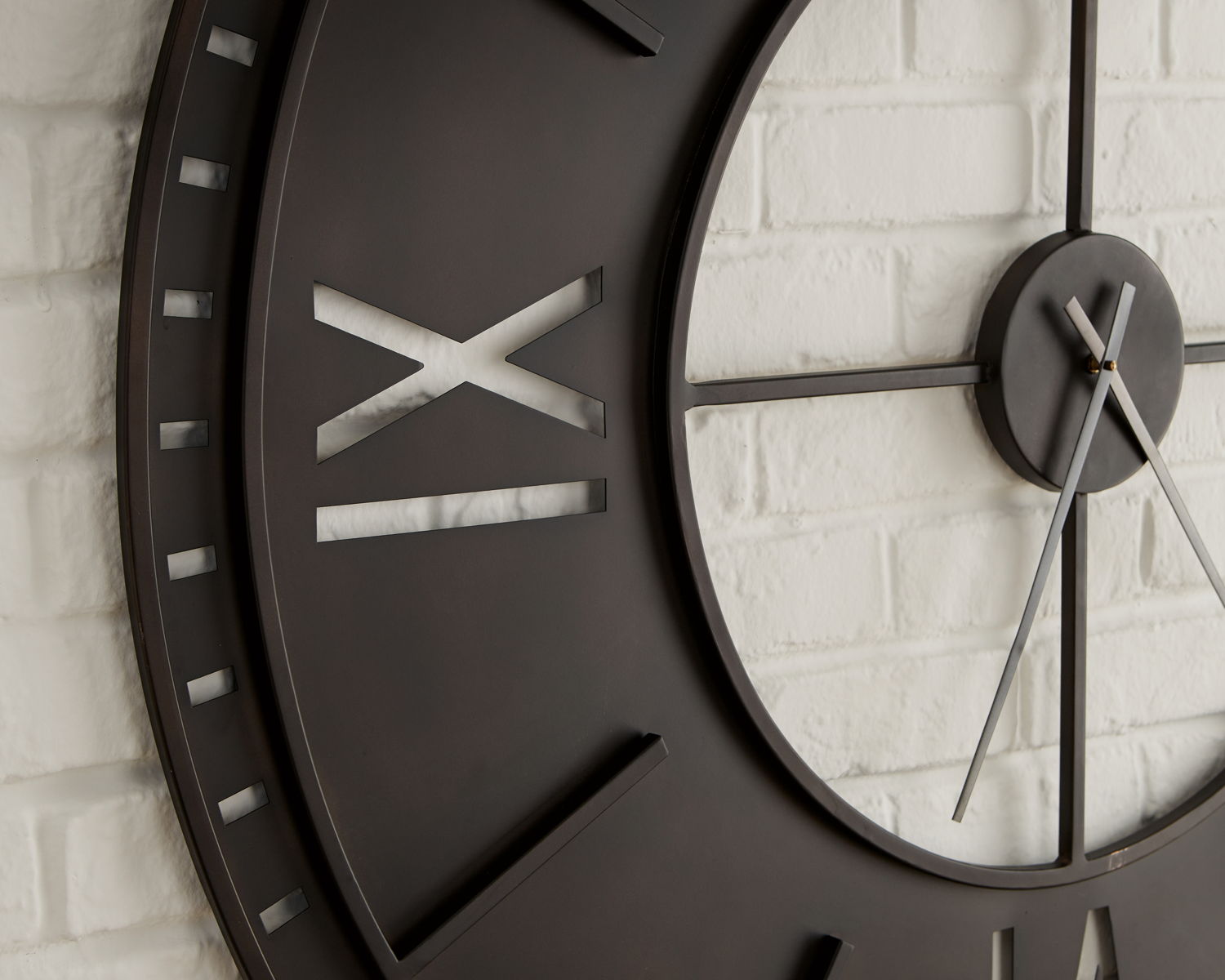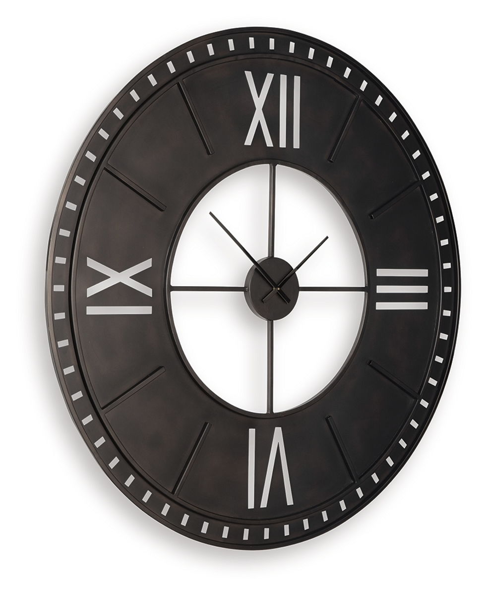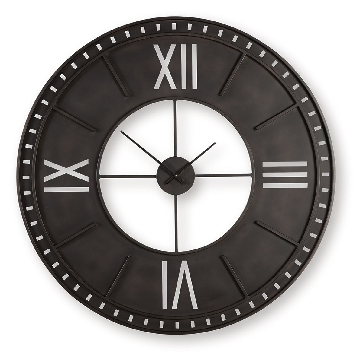 Transform your wall into a functional focal point with this wall clock. Incorporating antiqued brown metal and classic Roman numerals, the commanding timepiece anchors your space with both style and purpose.