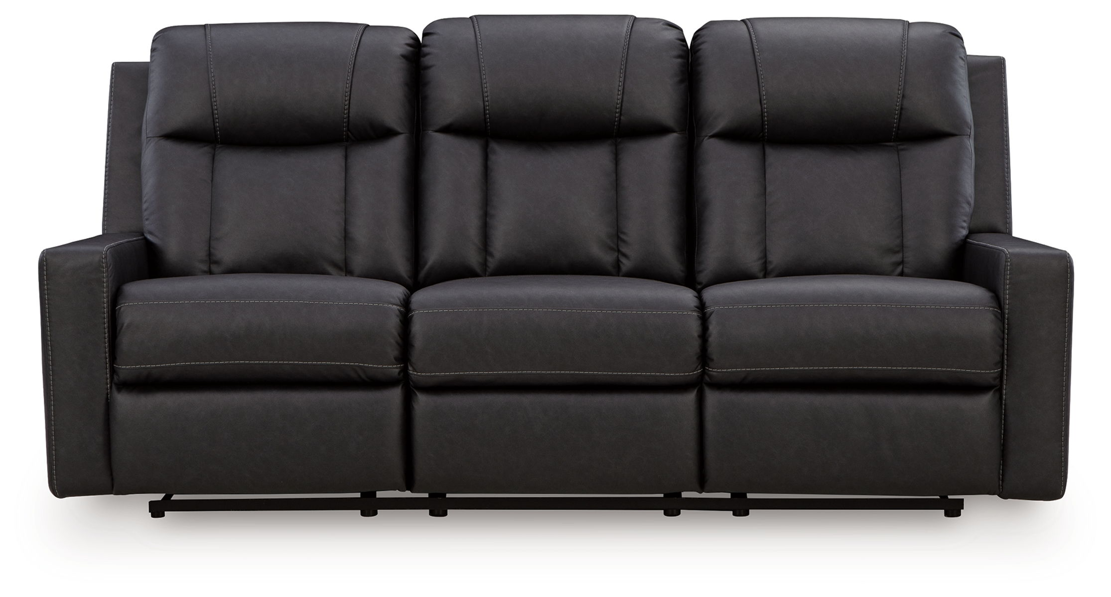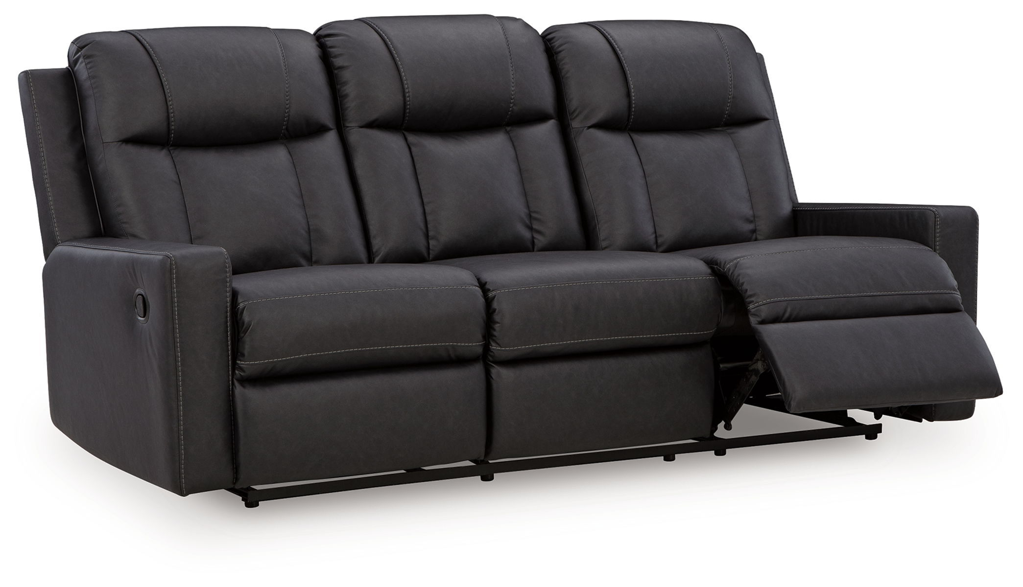 Classic, versatile and comfortable in every sense. This reclining sofa is designed for everyday relaxation. Sleek faux leather offers a soft, supple feel that’s easy to maintain, while one-pull reclining makes unwinding effortless. Complete with a goes-with-anything caramel hue, it’s a beautiful blend of style and practicality.