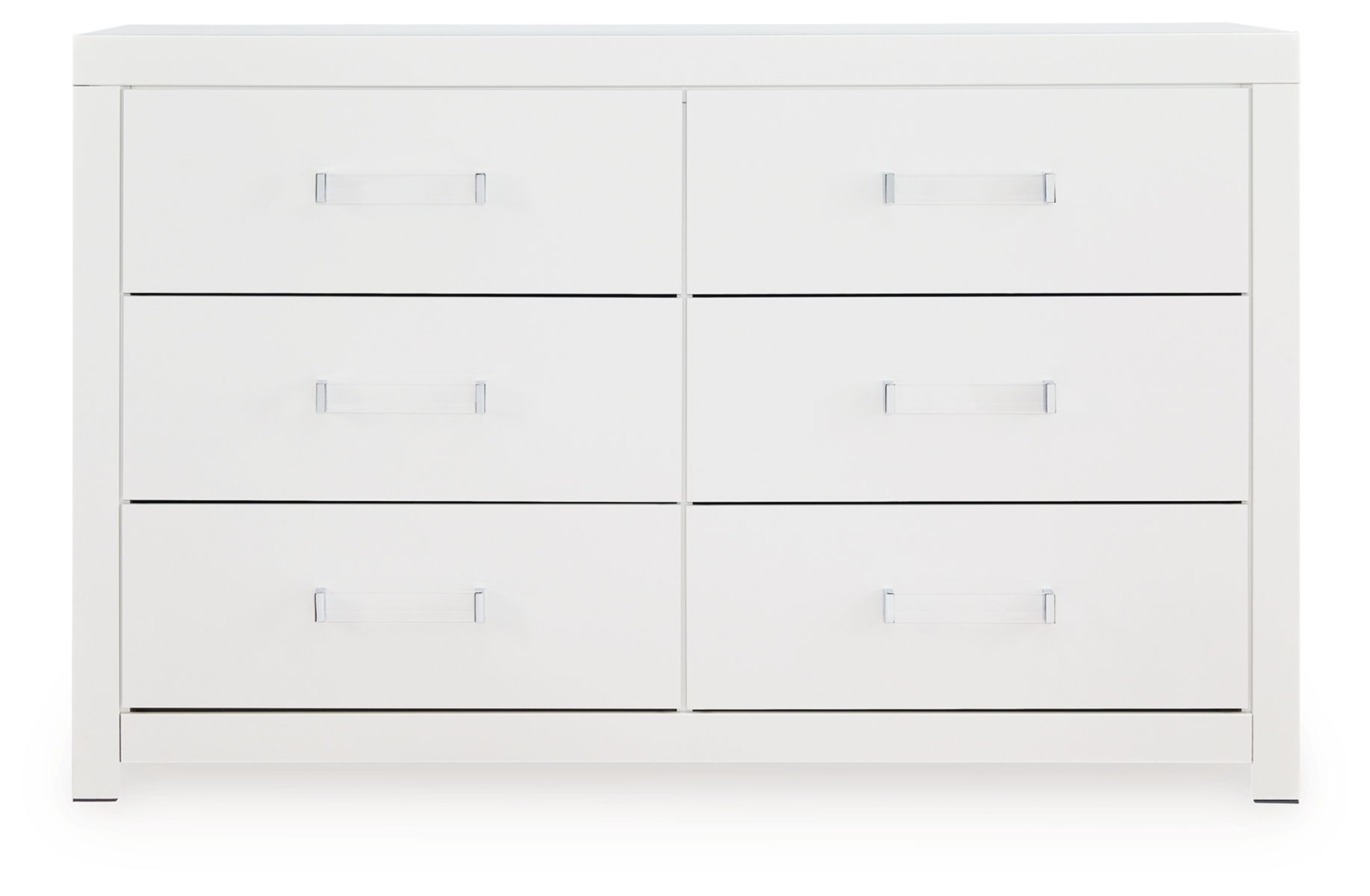 For those with a penchant for modern glamour, this dresser reflects your upscale taste. It’s dressed in a sleek matte finish, with acrylic and chrome-tone hardware incorporating a subtle shine. Smooth-gliding drawers tuck away clothes and other essentials in style.