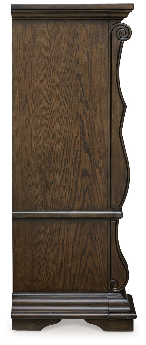 From its ornamental appliques to its large scale, this chest of drawers makes a bold statement. Spacious drawers store your clothes and more in stunning style. The look is timeless. The feel? Right at home.